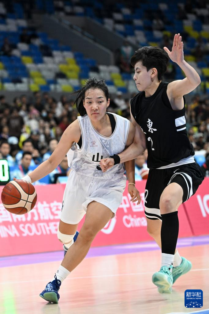 11月11日,山东队球员王泽(左)在比赛中带球进攻。