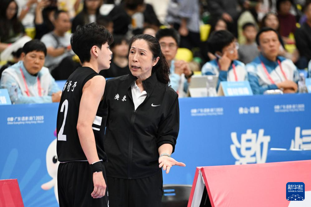 11月11日,广东队主教练郑薇(右)在场边指导广东队球员杨舒予。