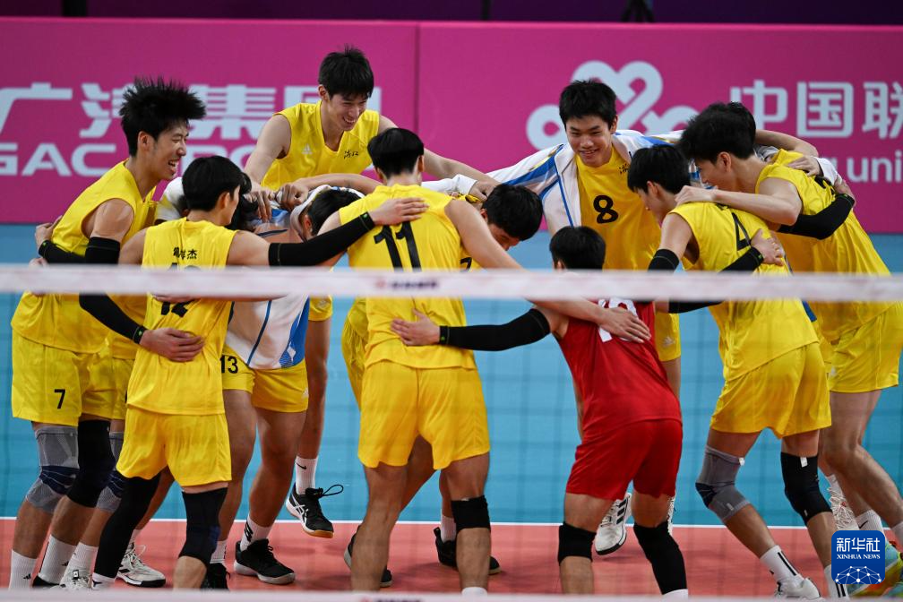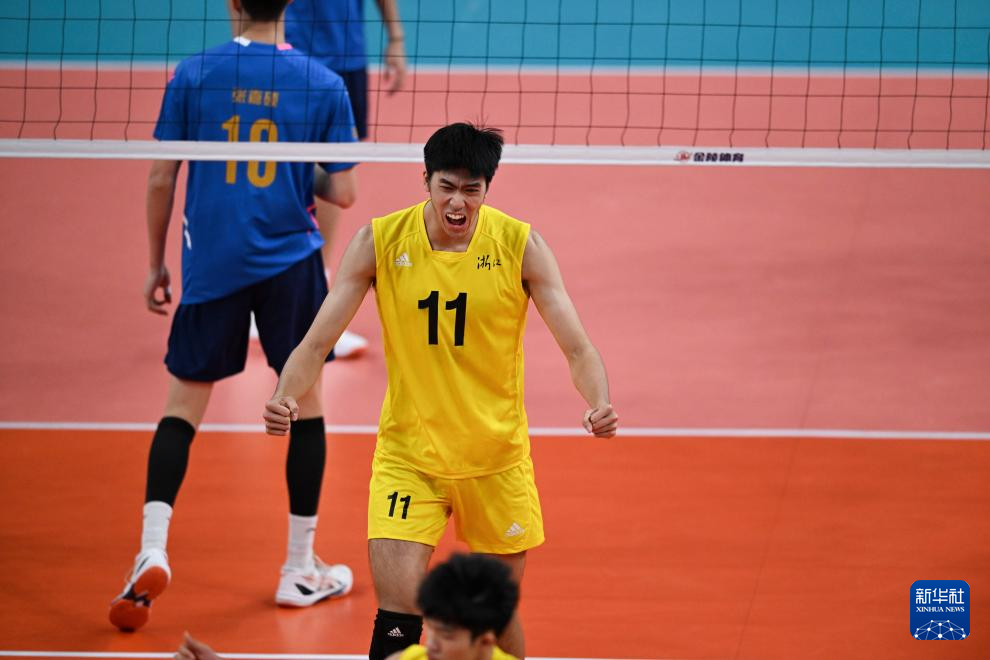 当日,在广州举行的第十五届全国运动会排球男子20岁以下组四分之一交叉赛中,浙江队3比0战胜北京队。