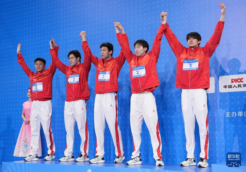 11月10日,浙江队选手何峻毅在比赛中入水。最终,浙江队获得冠军。