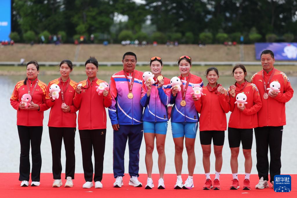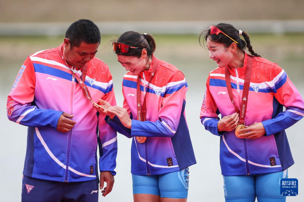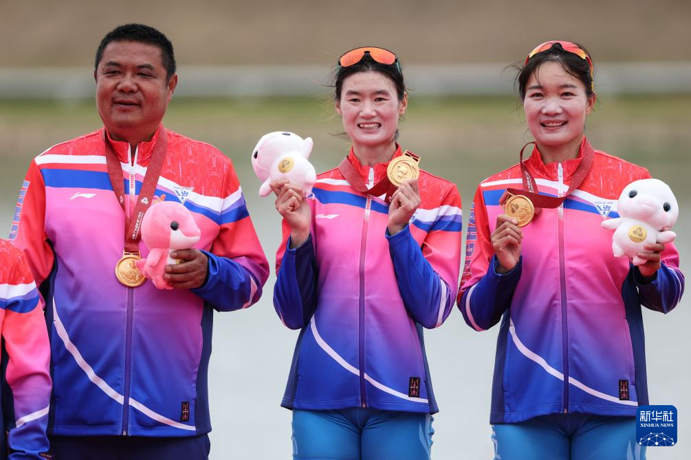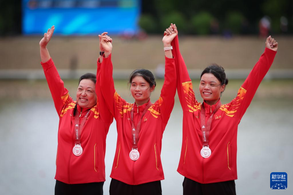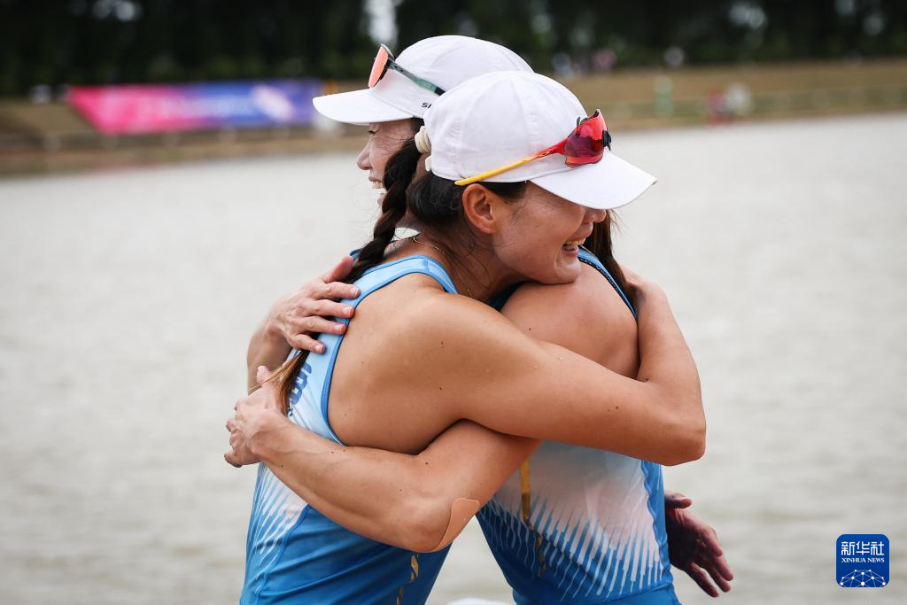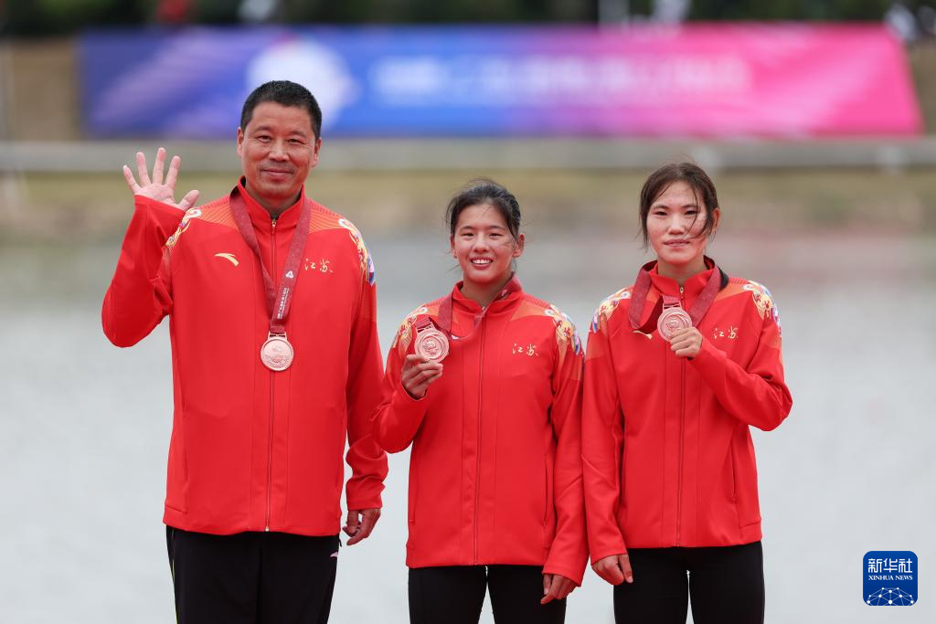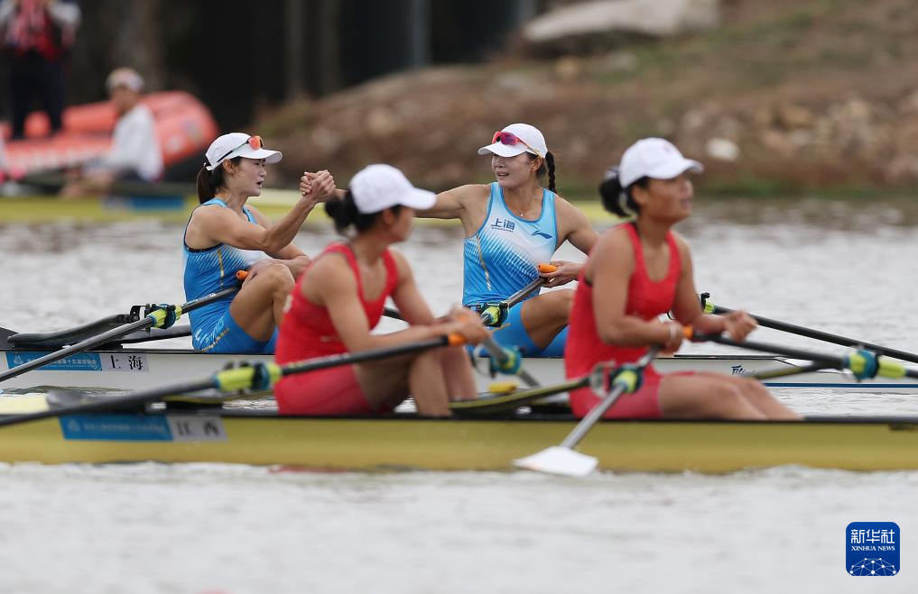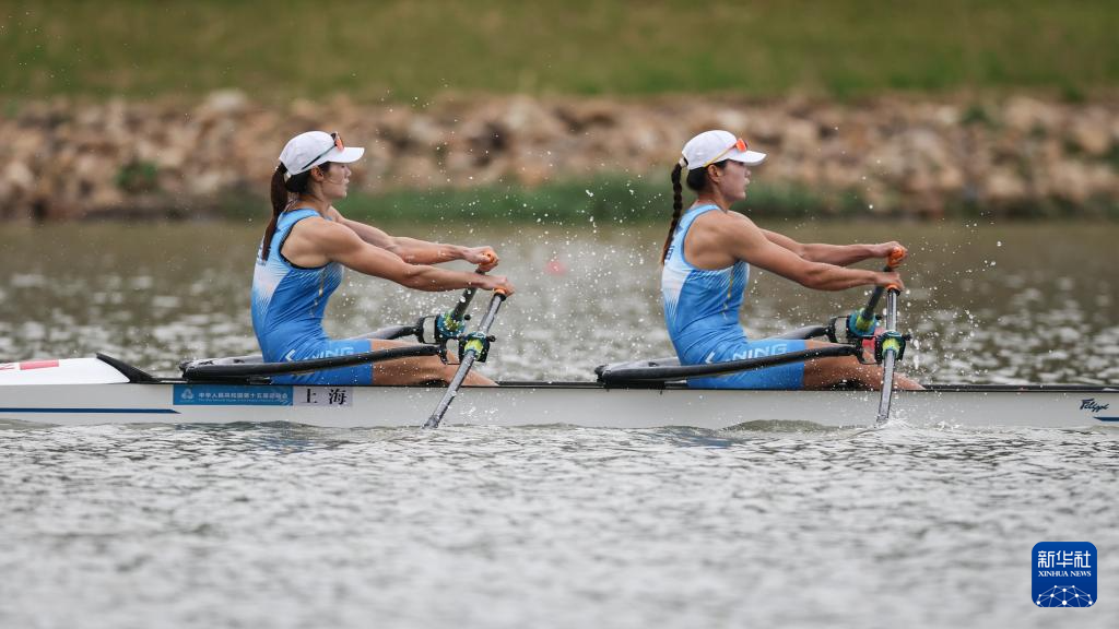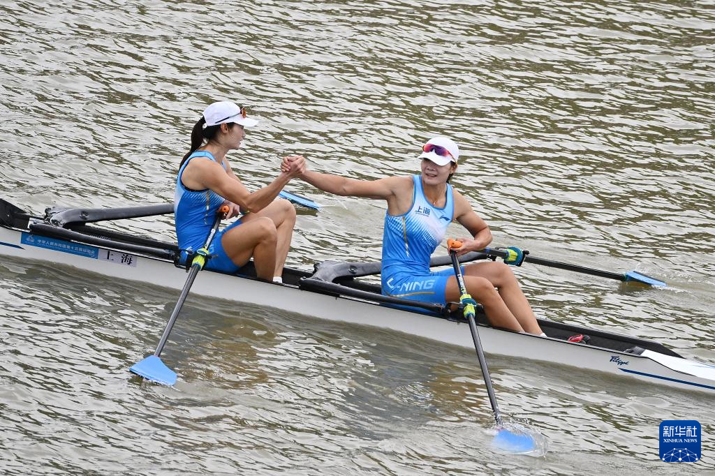 当日,第十五届全国运动会赛艇项目女子双人双桨决赛在广州举行。