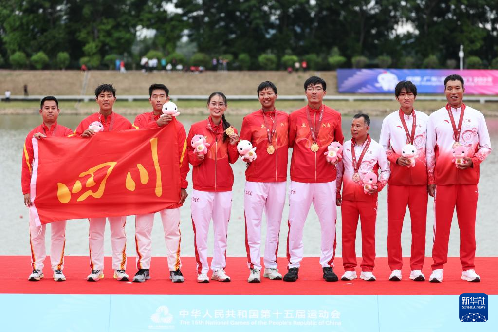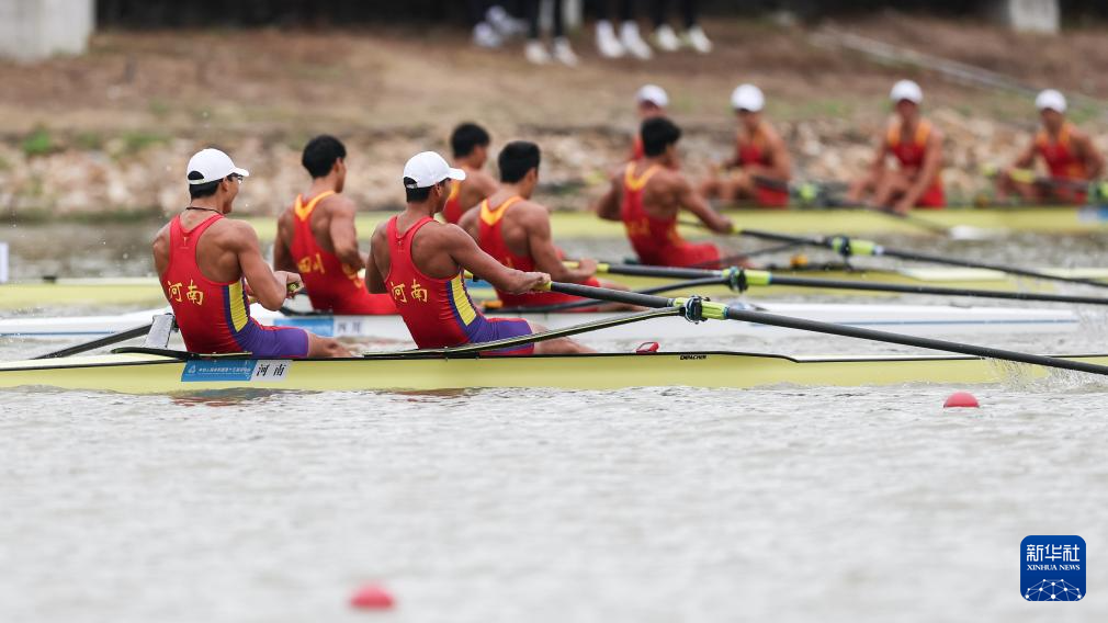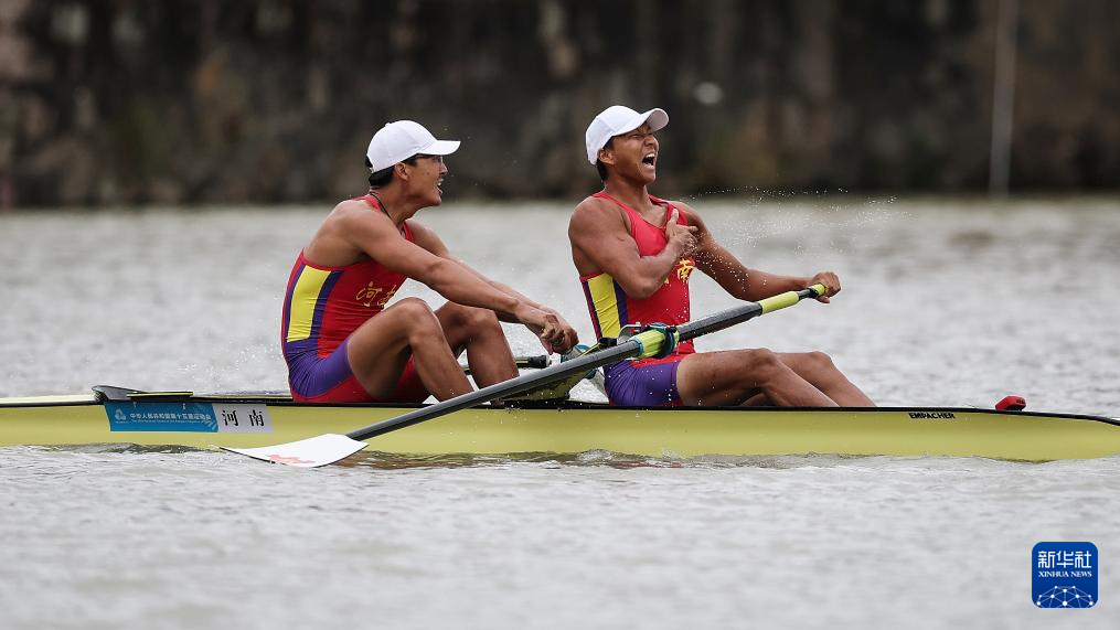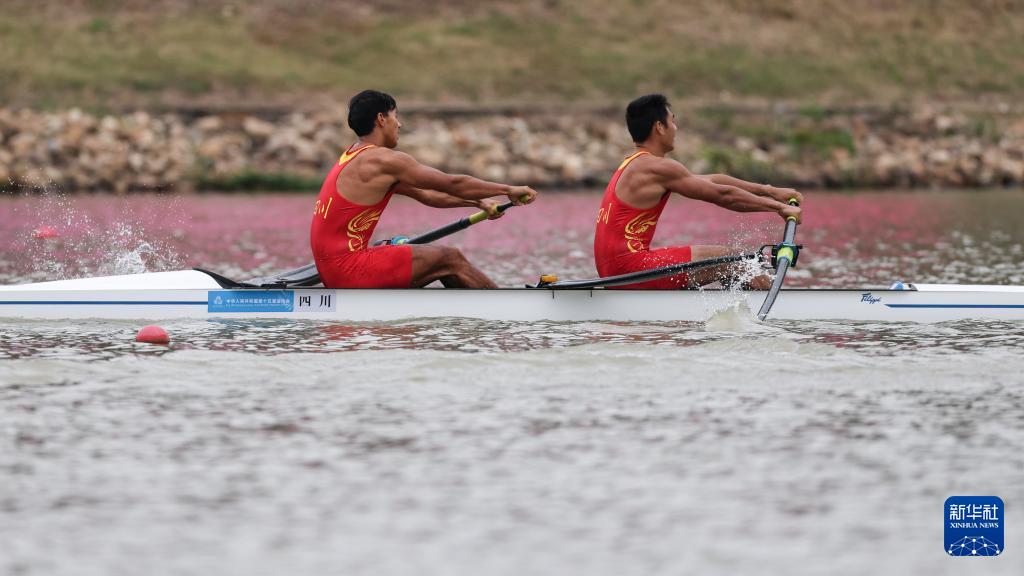 当日,第十五届全国运动会赛艇项目男子双人单桨决赛在广州举行。
