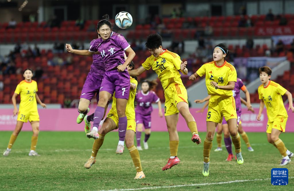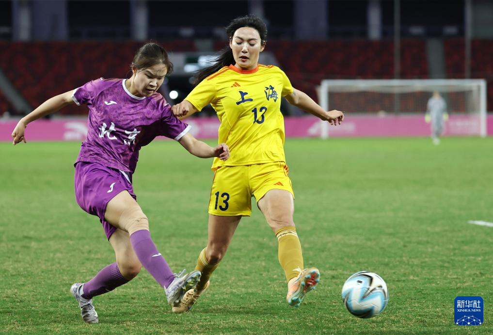 当日,在佛山进行的第十五届全国运动会足球女子成年组1至8名交叉赛中,上海队3比1战胜北京队。
