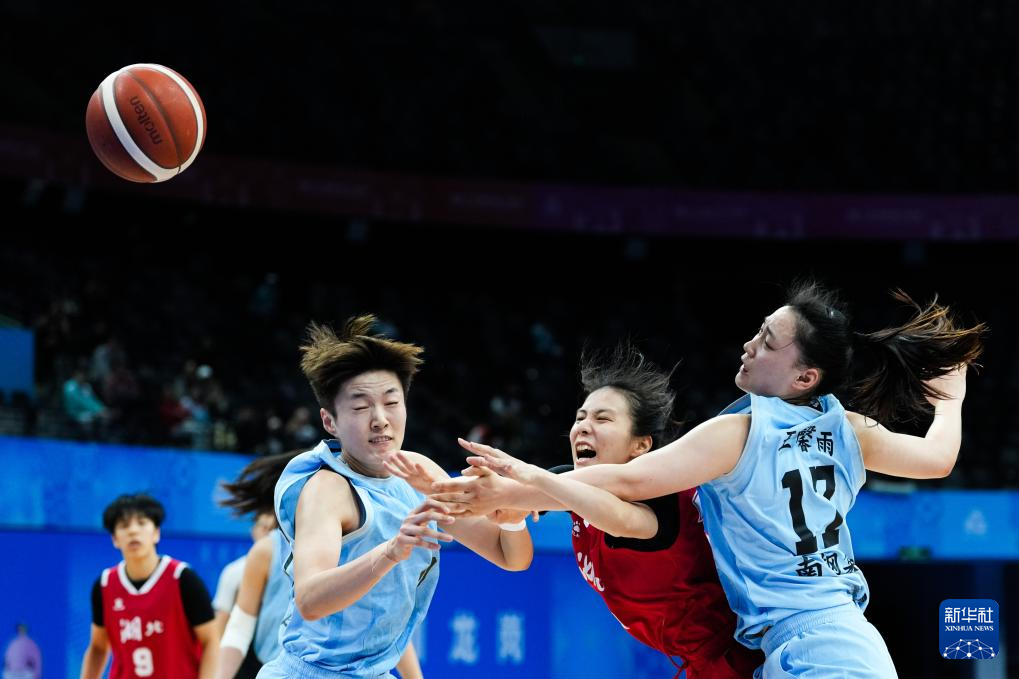 11月11日,湖北队球员张颖(右二)在比赛中拼抢。