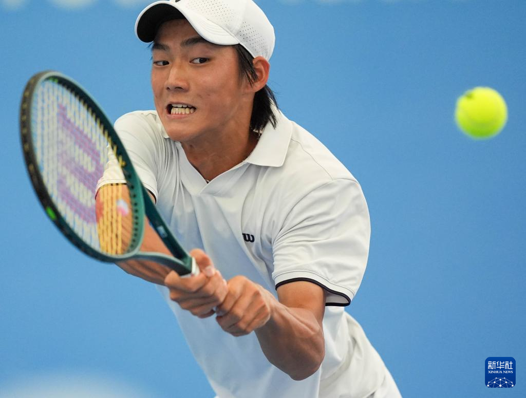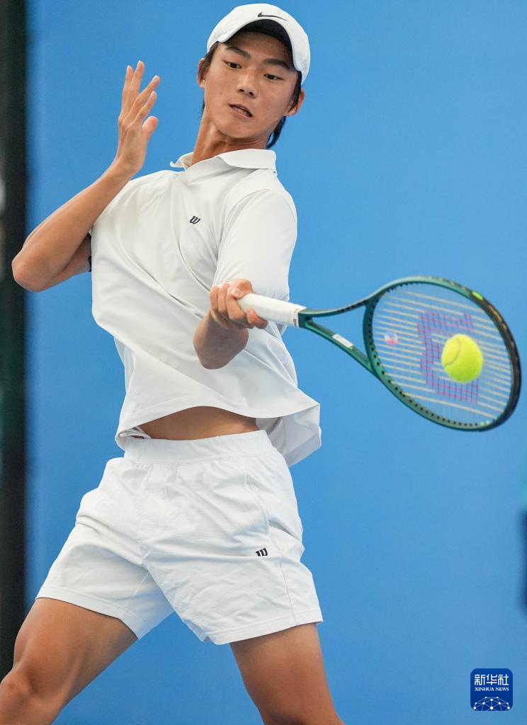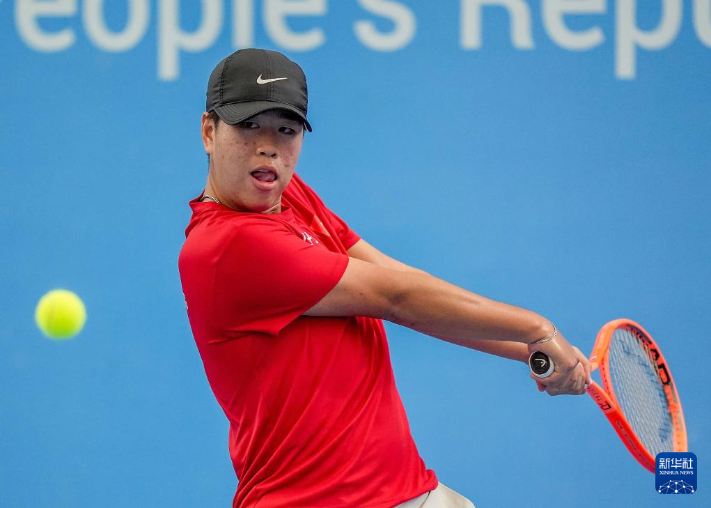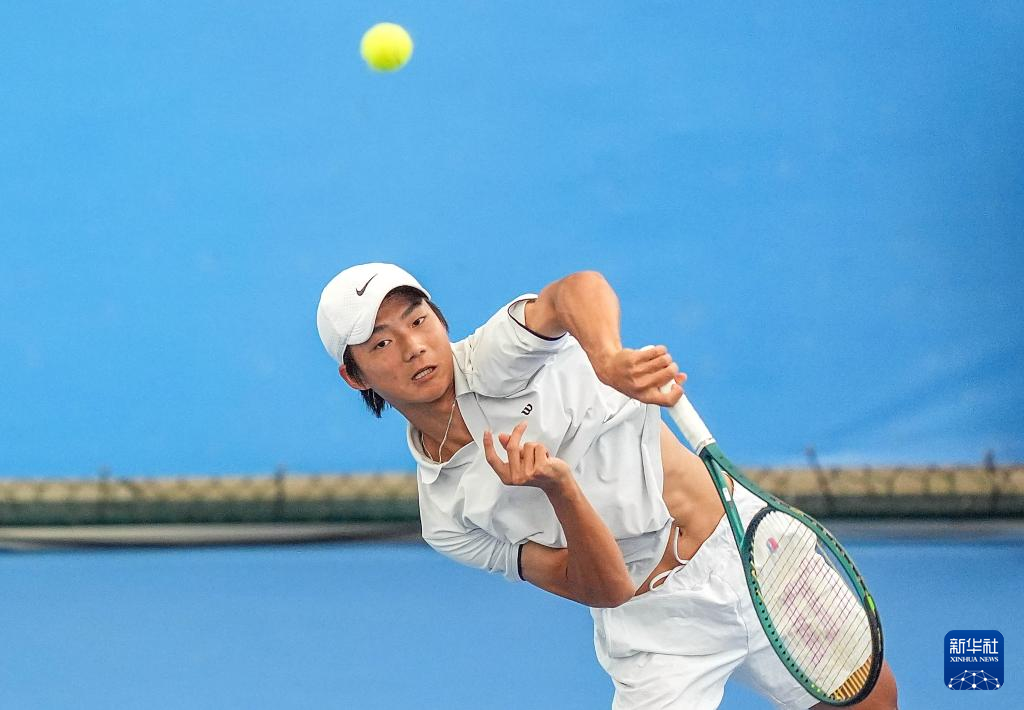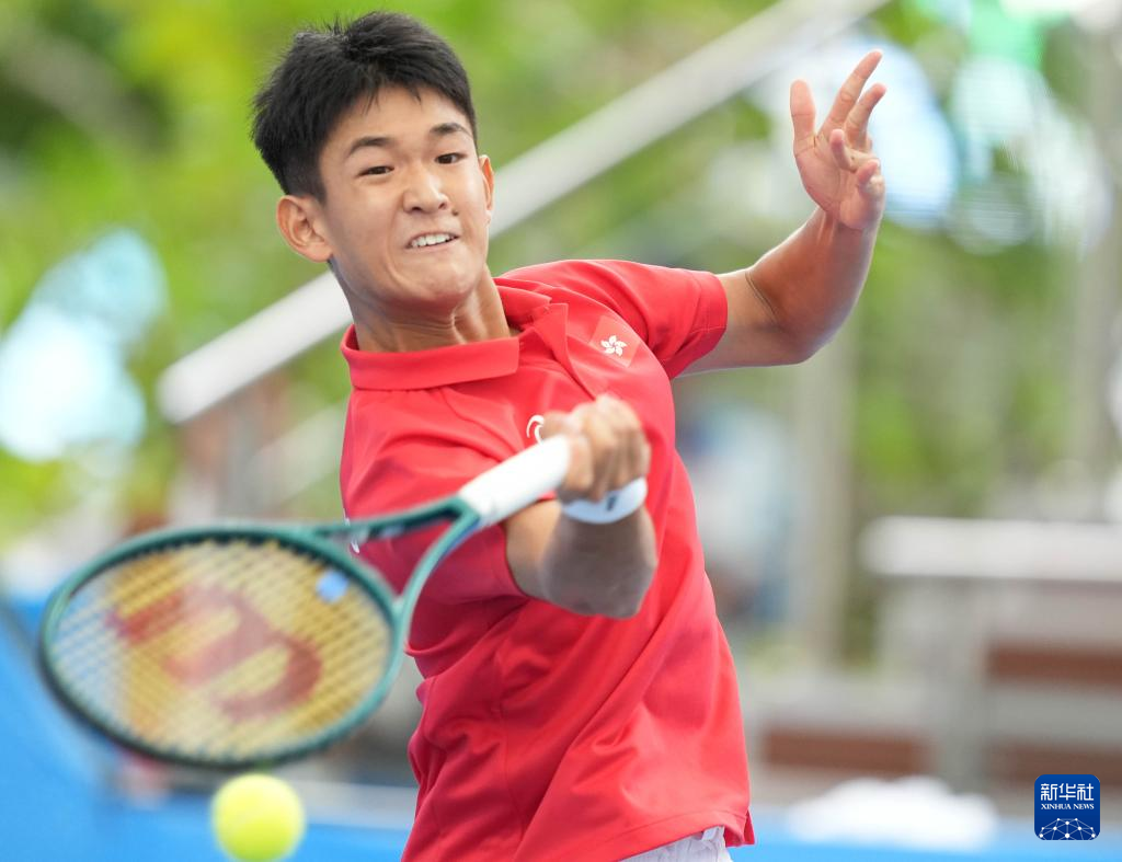 11月11日,江苏队选手徐旷清在单打比赛中回球。他2比0战胜香港队选手程铭燦。