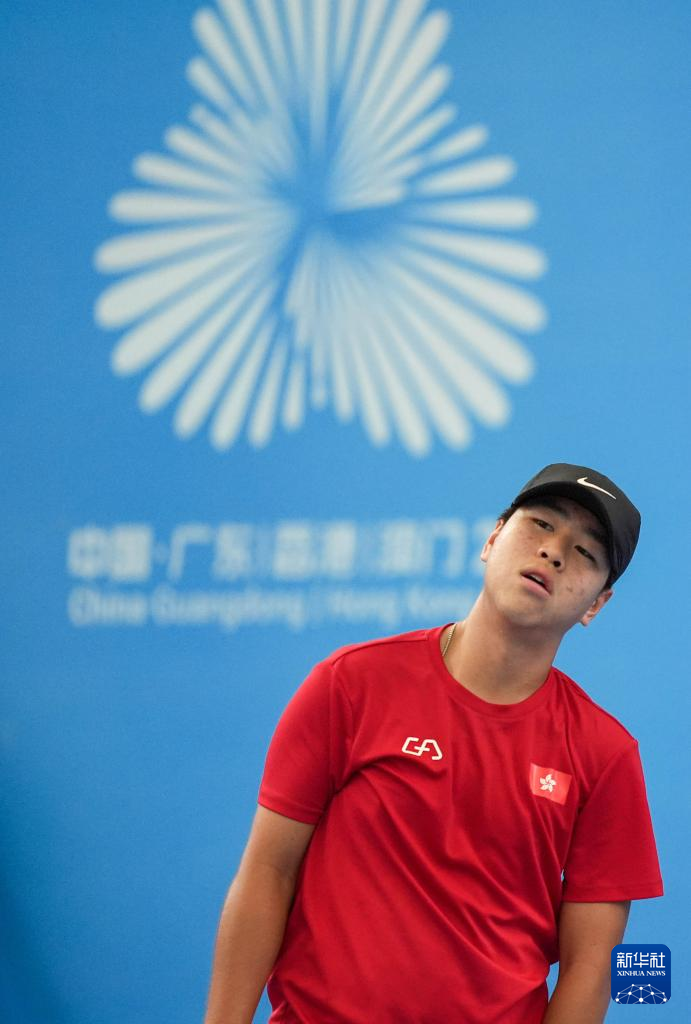 11月11日,江苏队选手徐旷清在比赛中擦汗。他2比0战胜香港队选手程铭燦。
