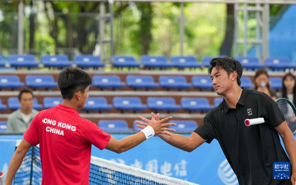 11月11日,江苏队选手徐旷清(右)与香港队选手程铭燦在比赛后握手。徐旷清2比0获胜。