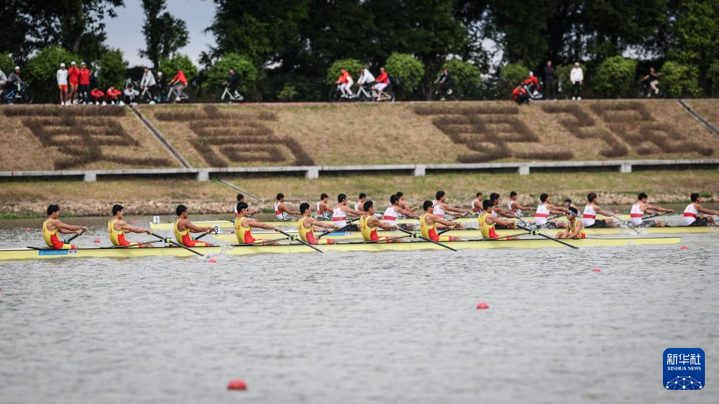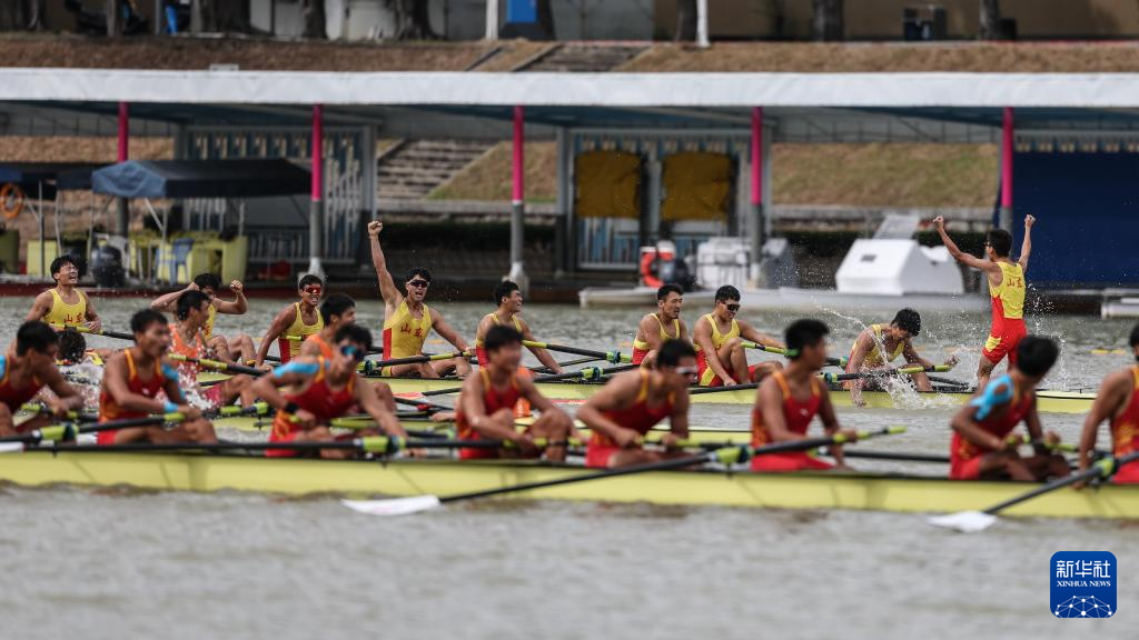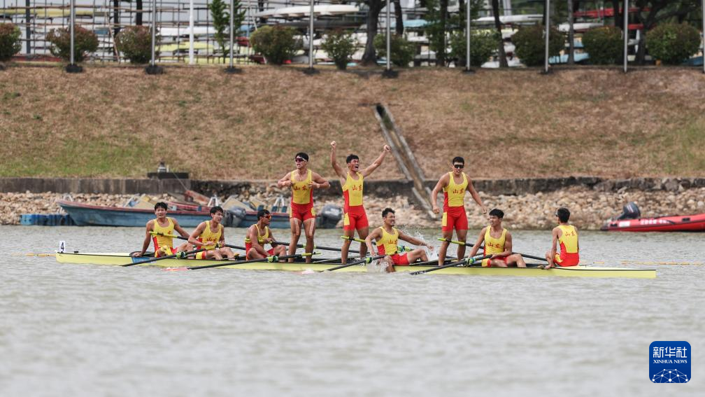 当日,第十五届全国运动会赛艇项目男子八人单桨有舵手决赛在广州举行。