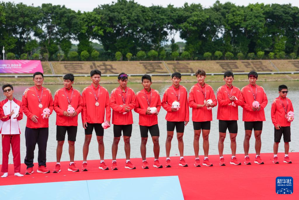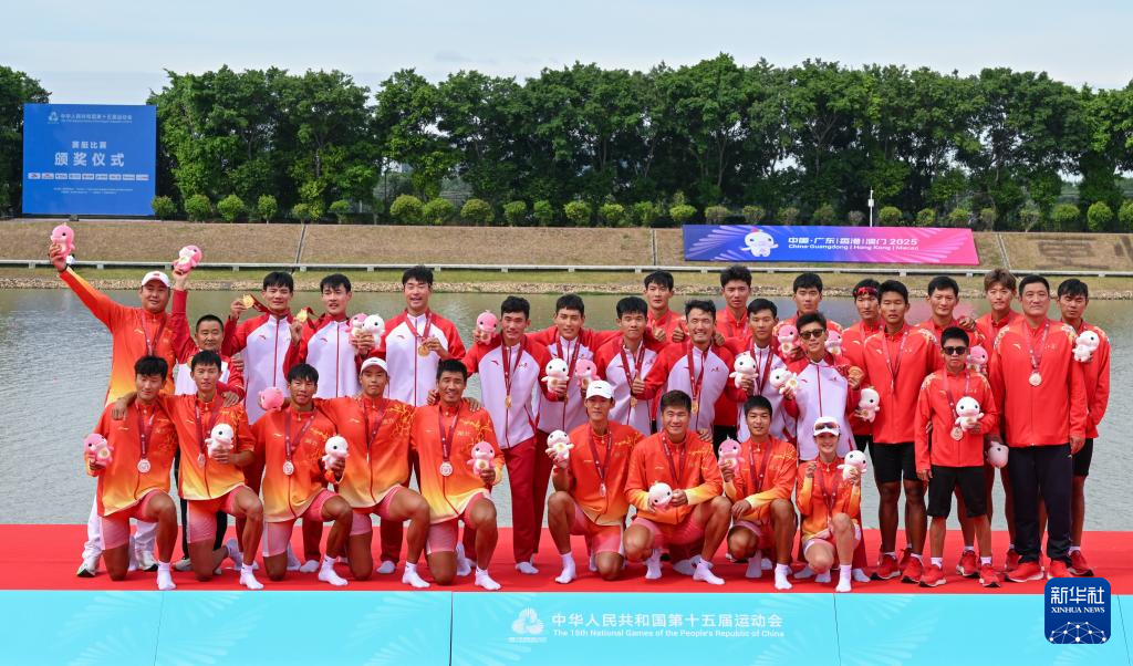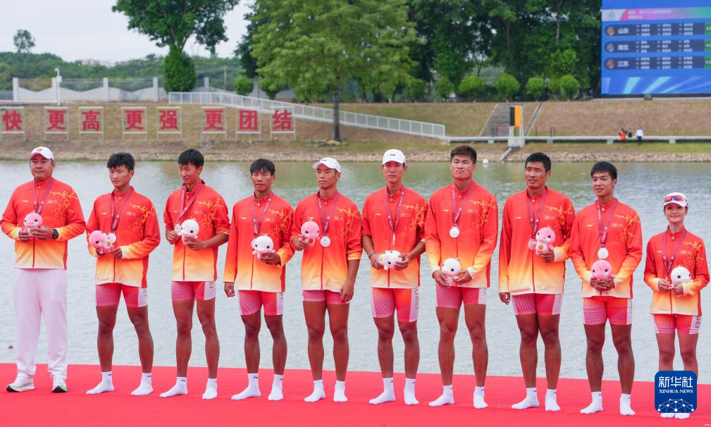 当日,在广州举行的第十五届全国运动会赛艇项目男子八人单桨有舵手决赛中,山东队获得冠军,湖北队获得亚军,江苏队获得季军。