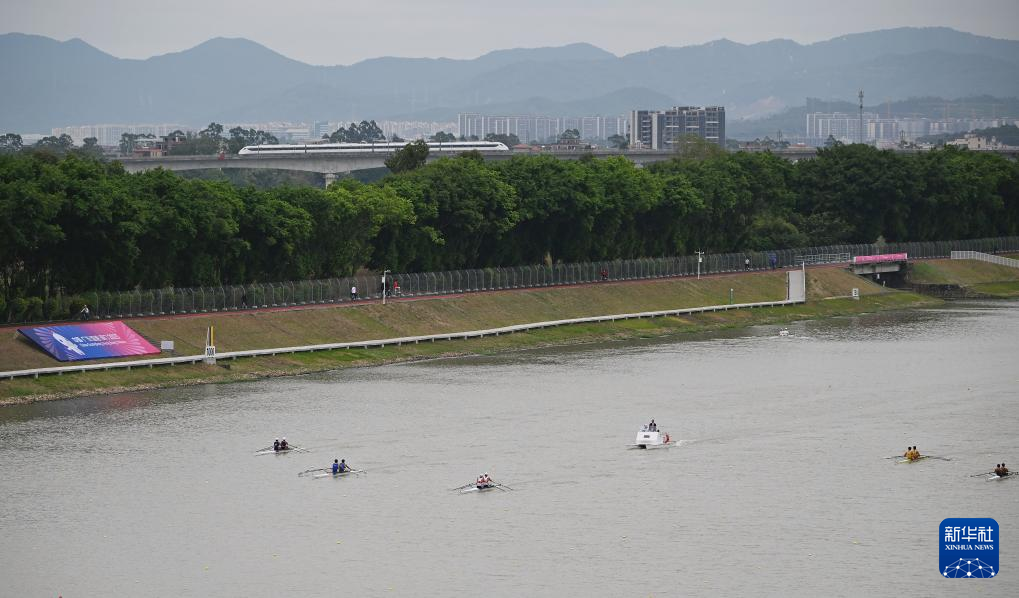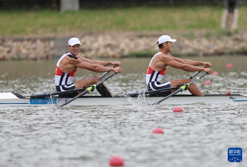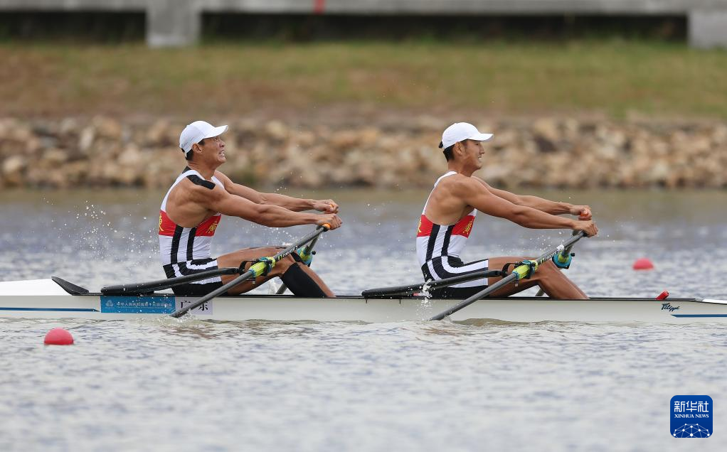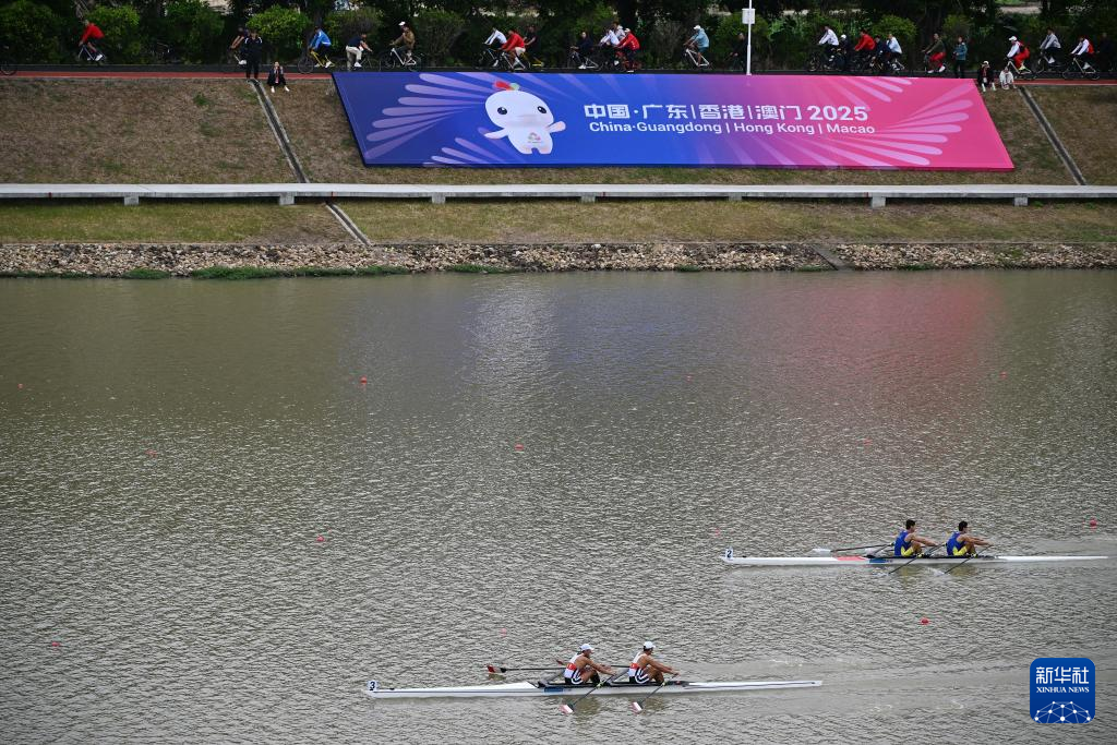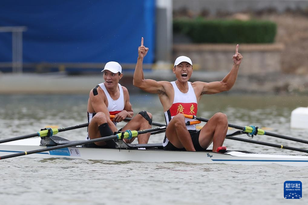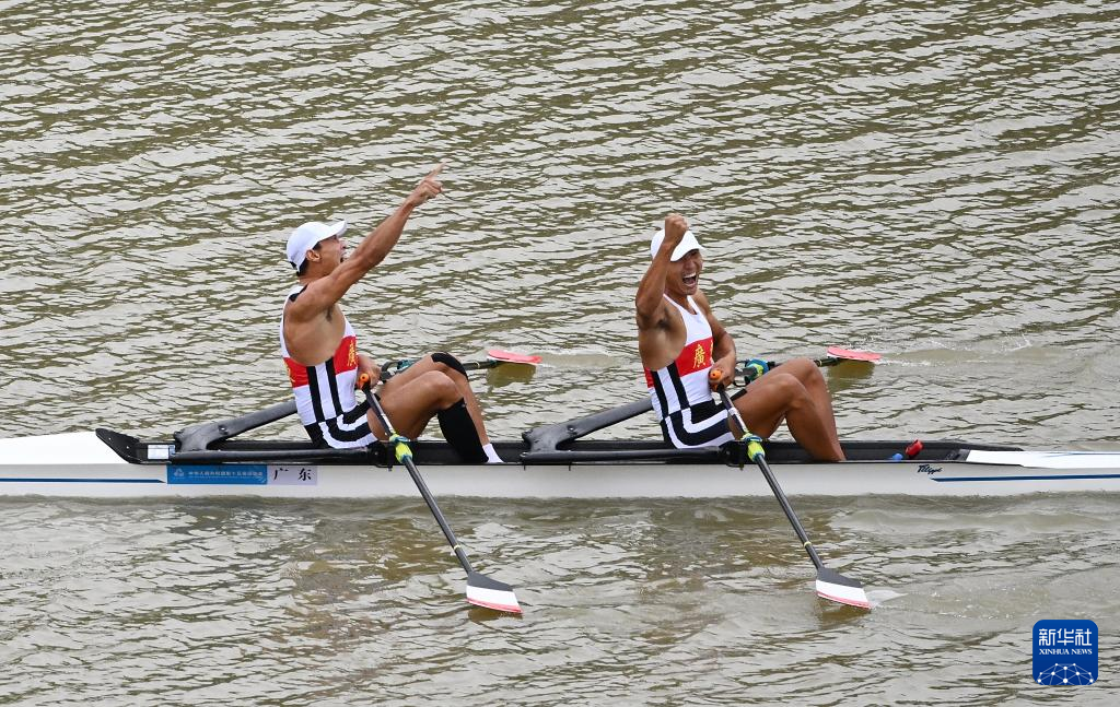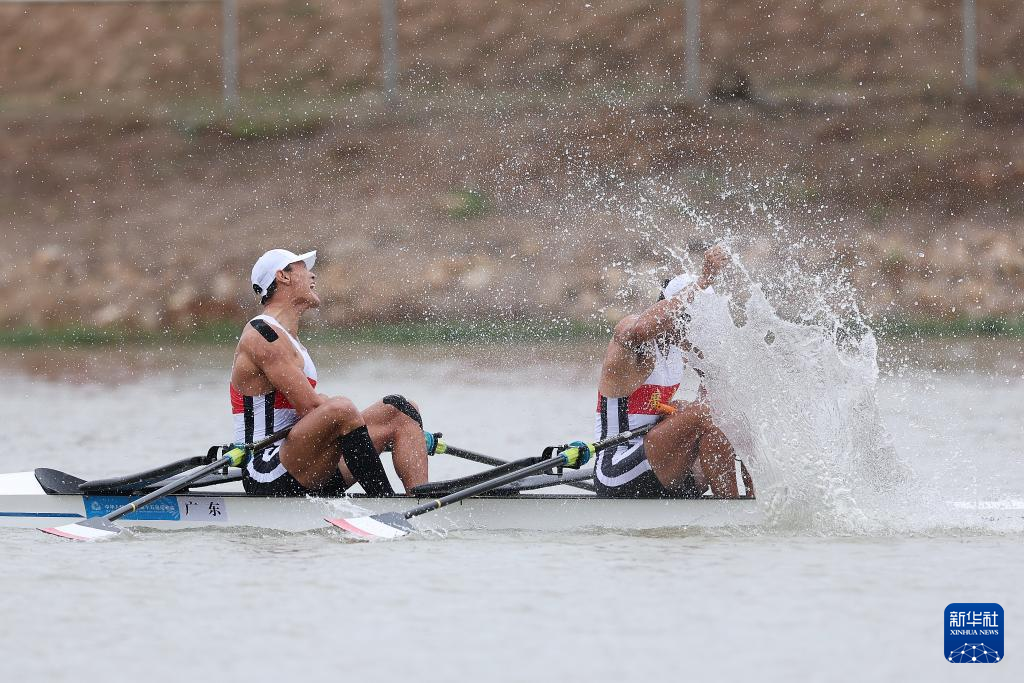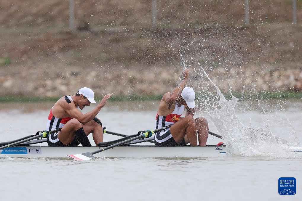 当日,第十五届全国运动会赛艇项目男子双人双桨决赛在广州举行。