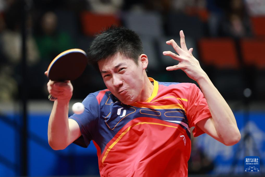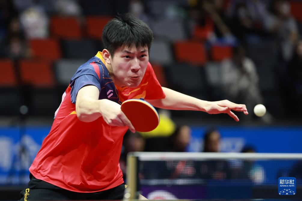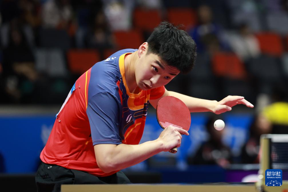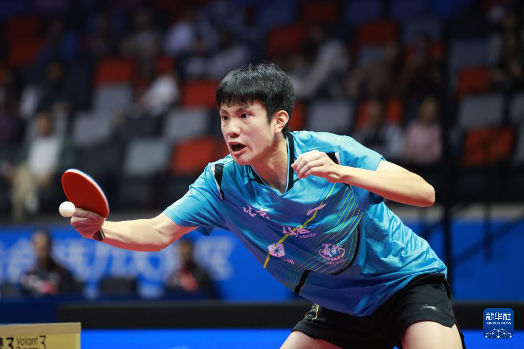 11月12日,河南队选手温瑞博在比赛中回球。