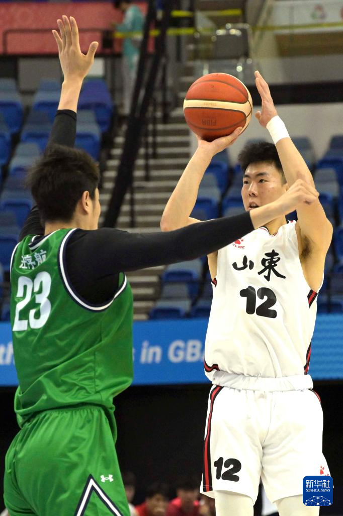 11月12日,山东队球员段昂君(右)在比赛中投篮。