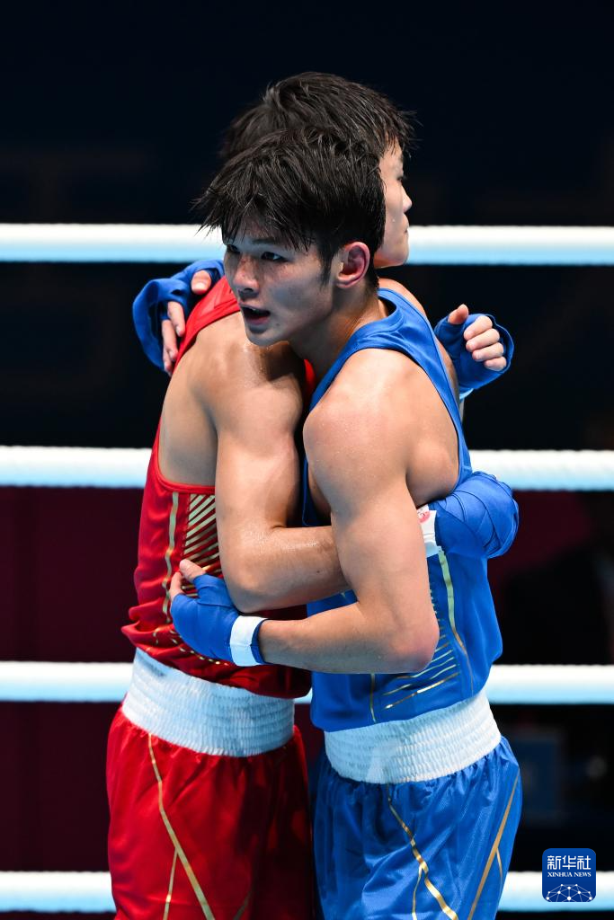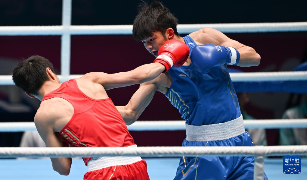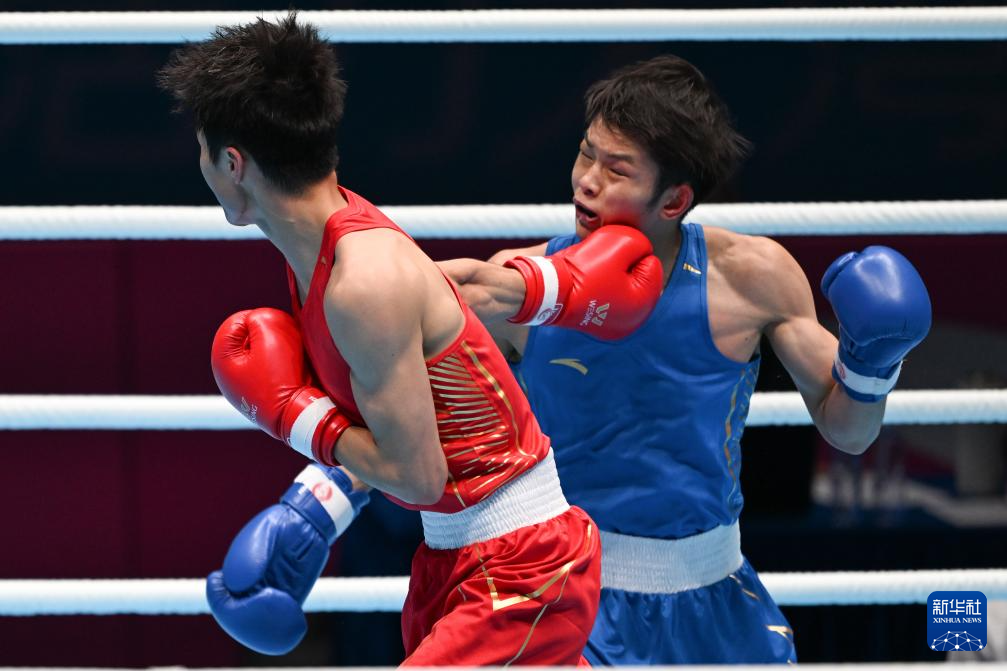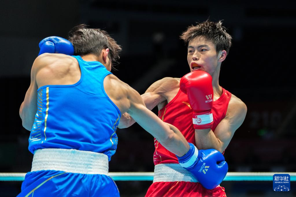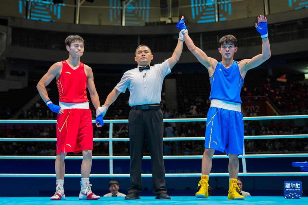 当日,在深圳进行的第十五届全国运动会拳击男子57公斤级半决赛中,广东队选手陈鑫林战胜成都体育学院队选手钱茄豪,晋级决赛。