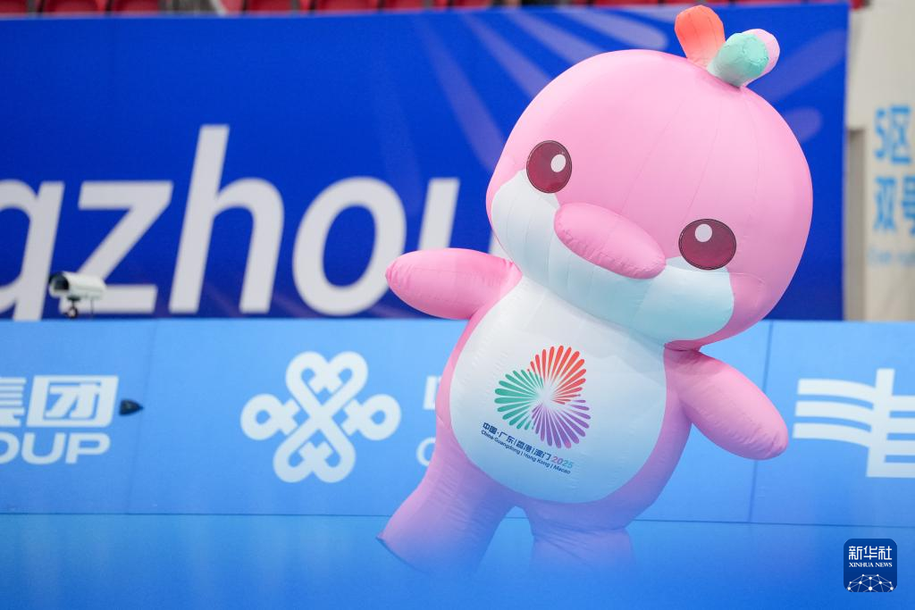 11月12日,全运会吉祥物“乐融融”在比赛间隙表演。