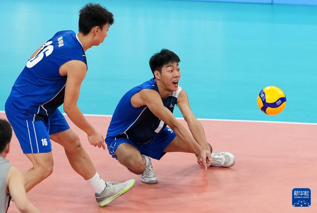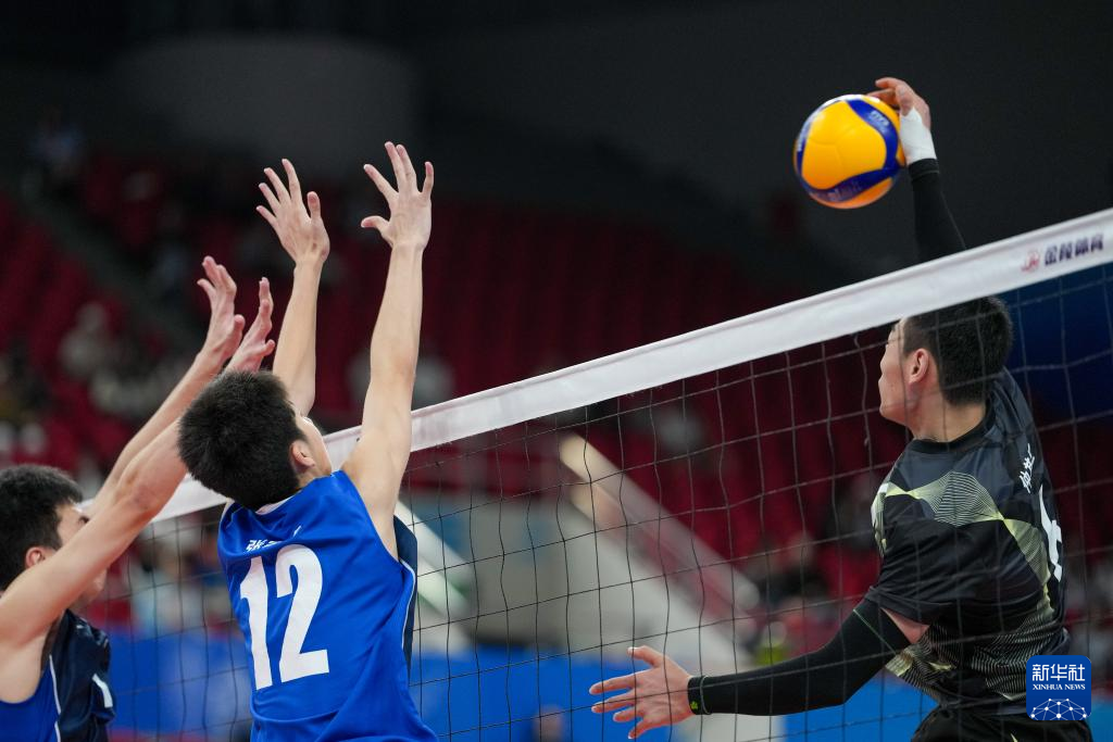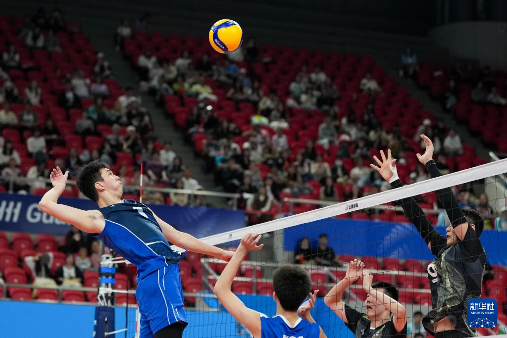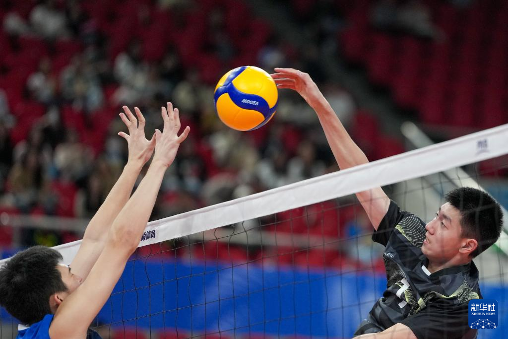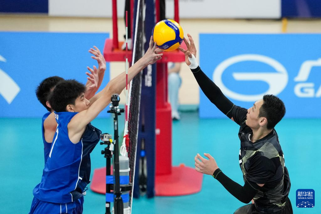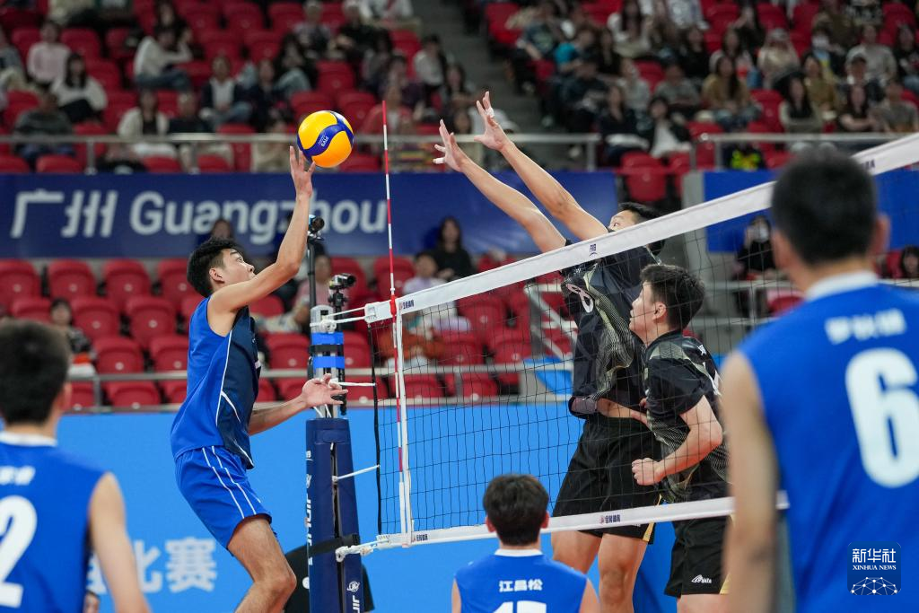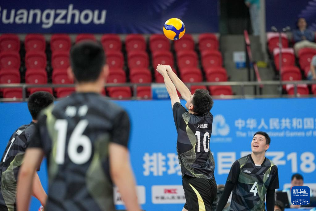 当日,在广州举行的第十五届全国运动会排球男子18岁以下组A组小组赛中,江苏队3比2战胜重庆队。