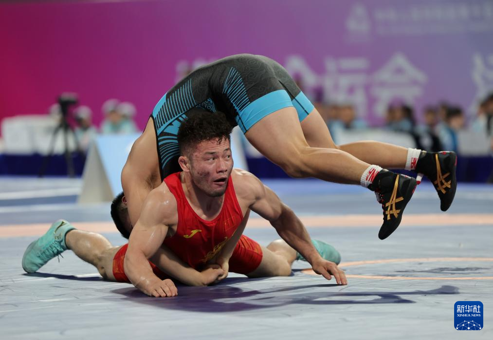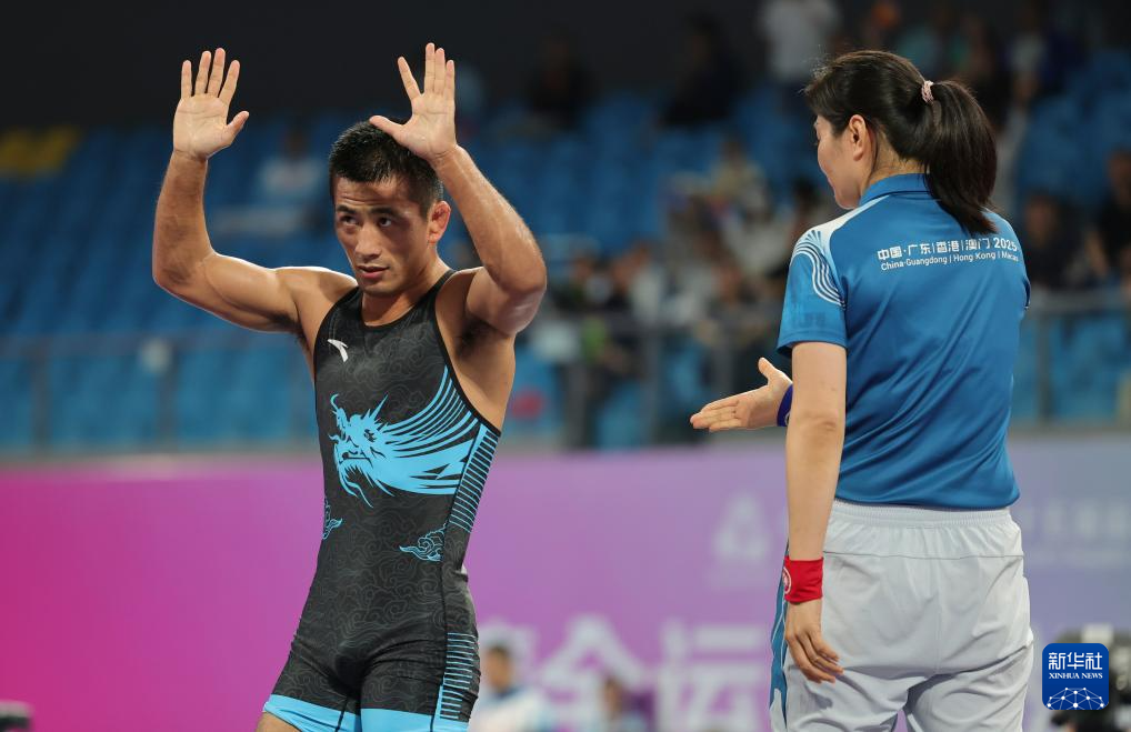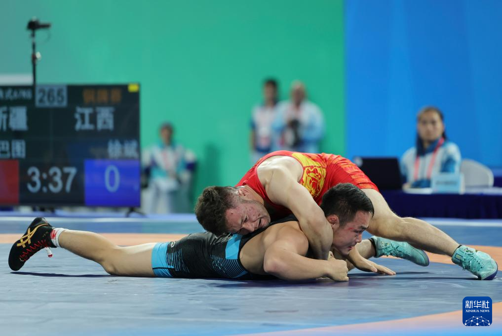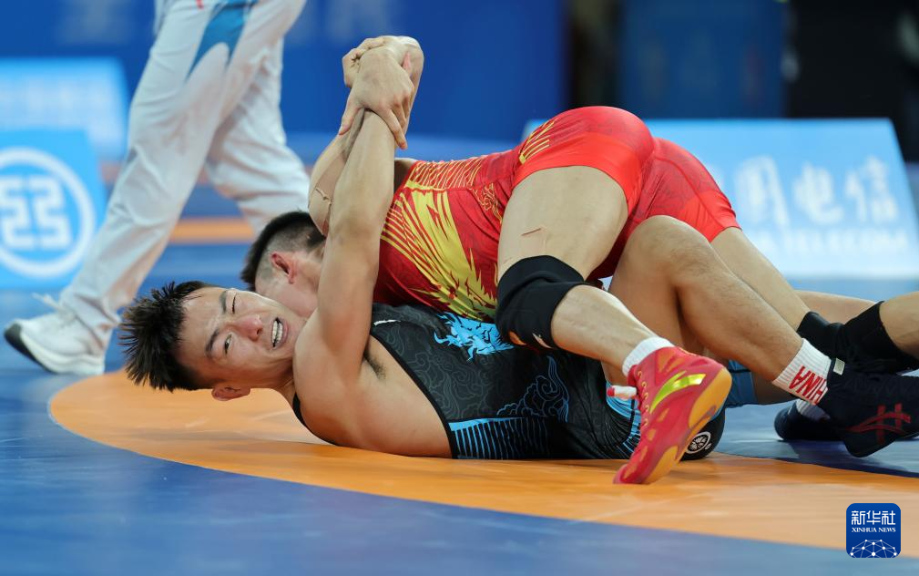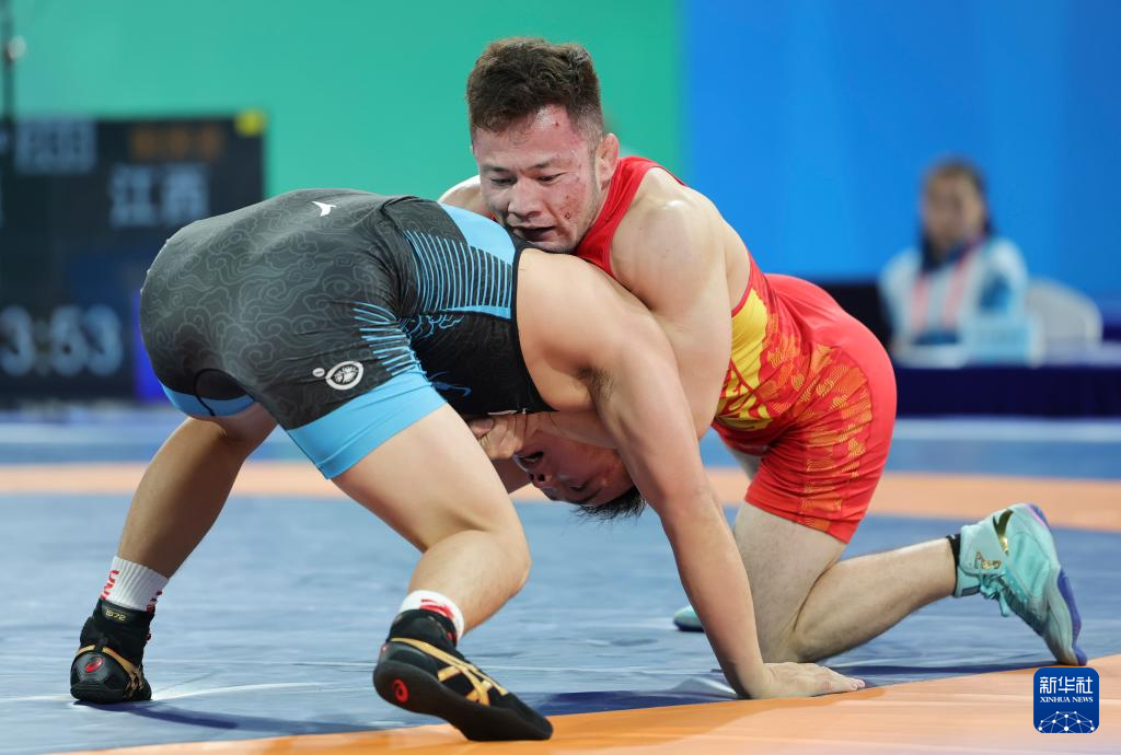 当日,第十五届全国运动会摔跤男子古典式67公斤级比赛在广东清远举行。