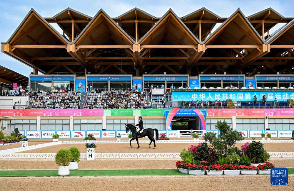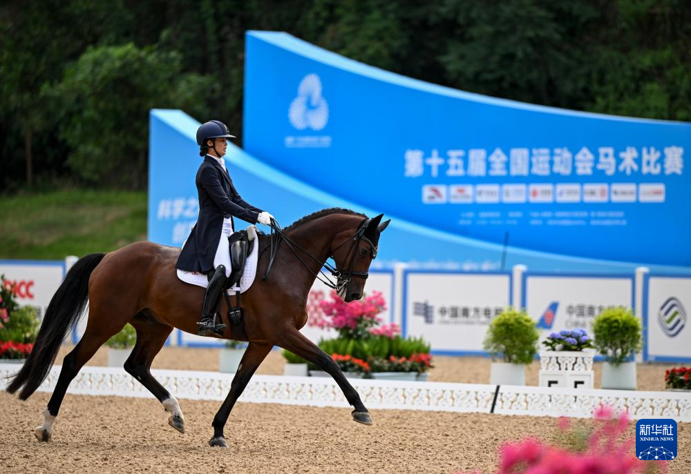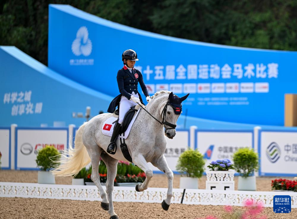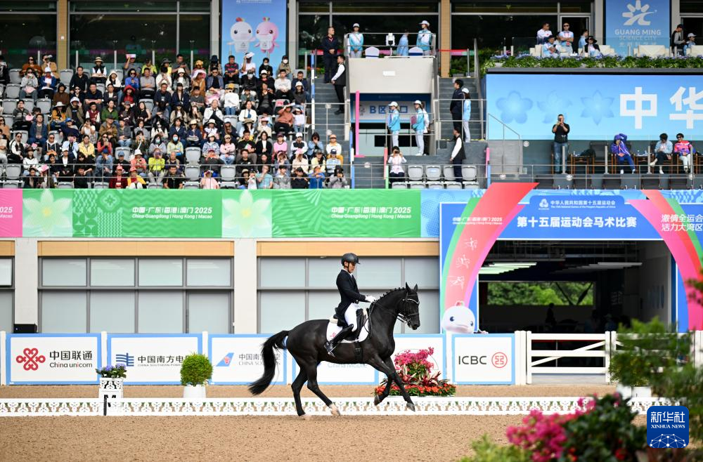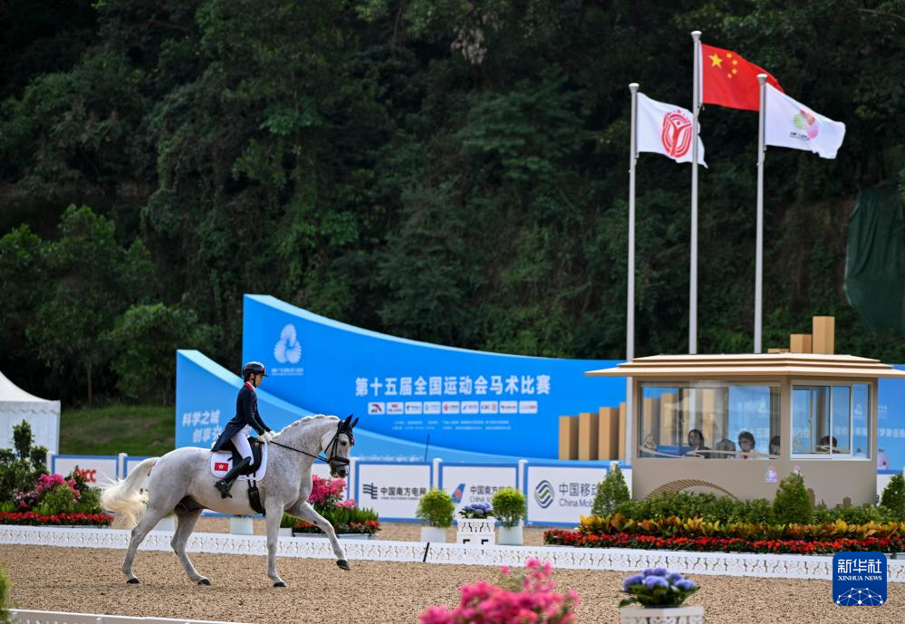 当日,第十五届全国运动会马术项目盛装舞步个人赛决赛在广东深圳光明国际马术中心举行。