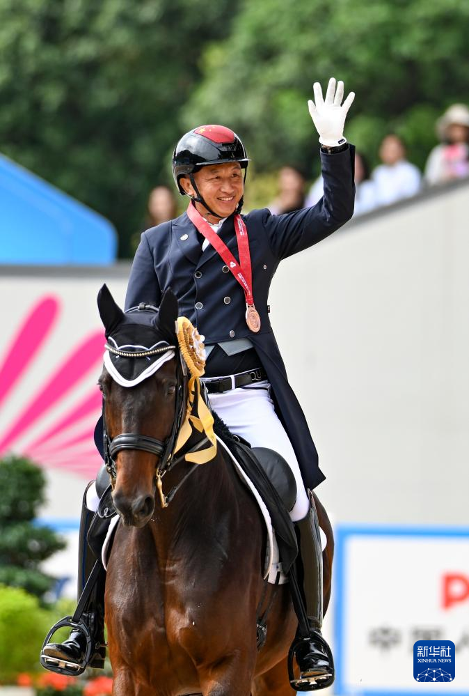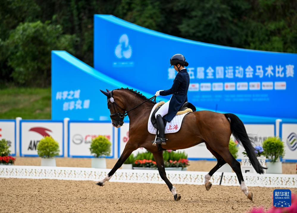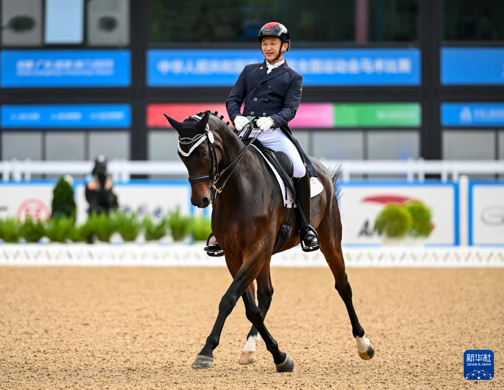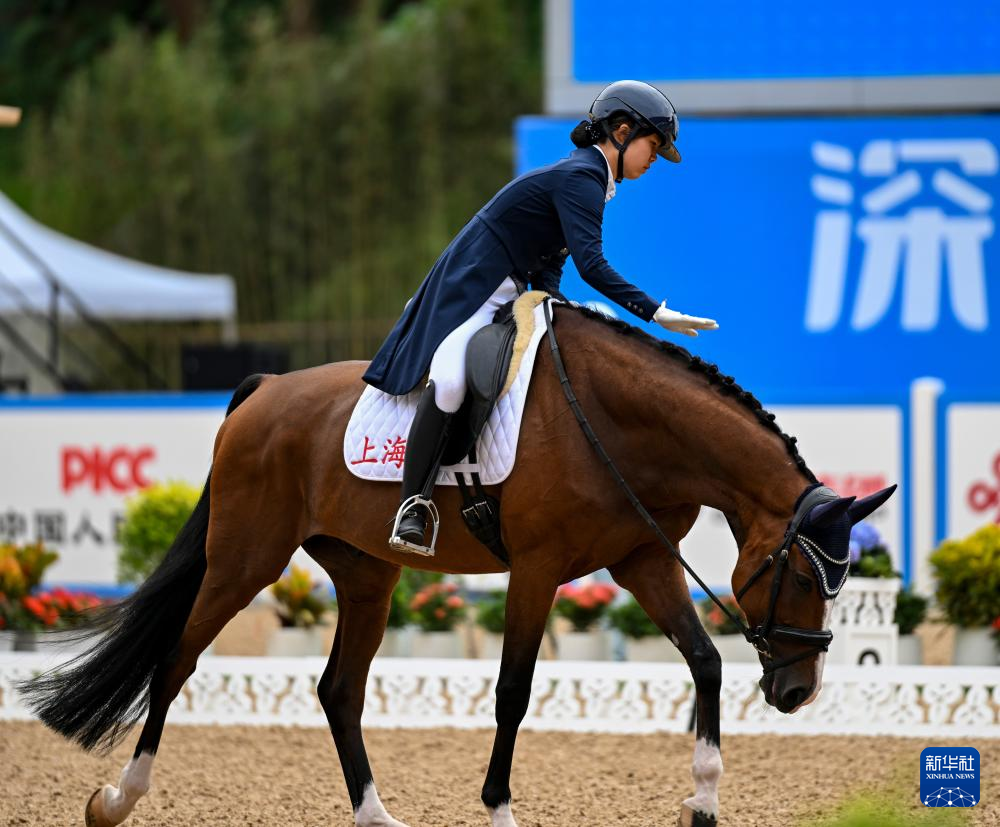 当日,第十五届全国运动会马术项目盛装舞步个人赛决赛在广东深圳光明国际马术中心举行。