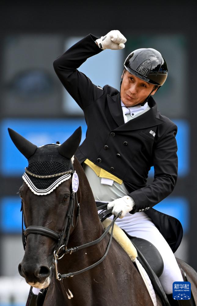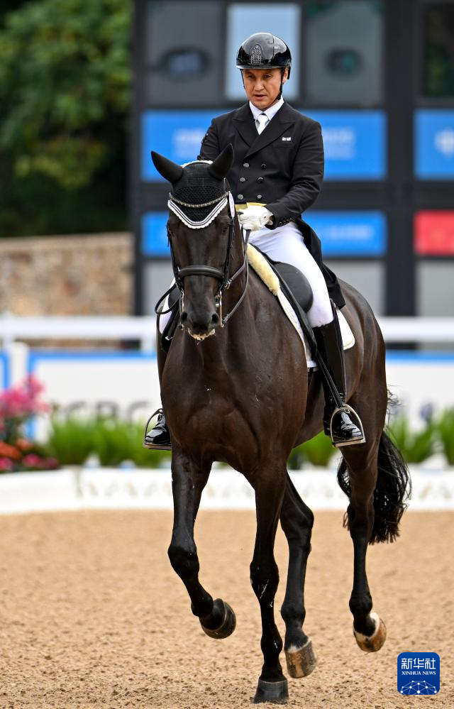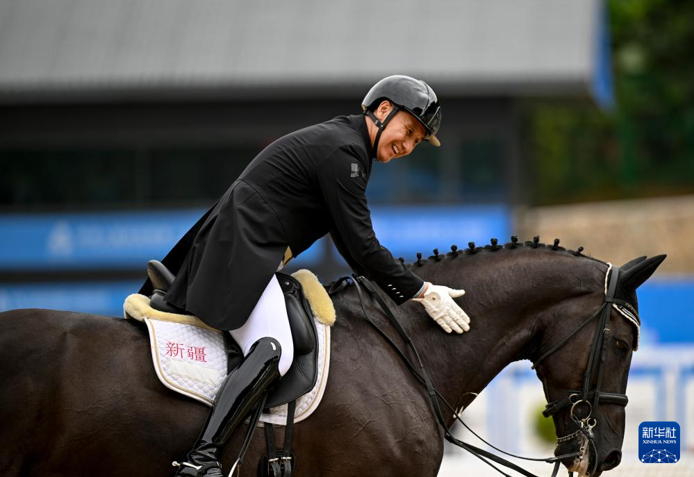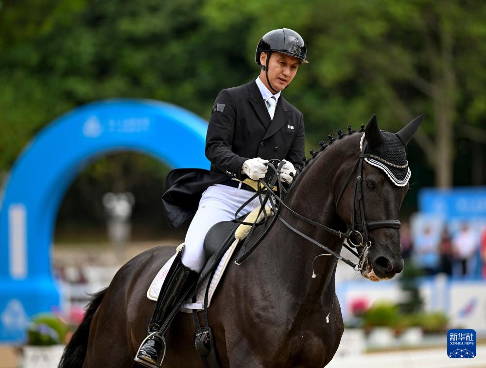11月12日,新疆队选手张红钊和马匹“Frescher Friedrich”在比赛中,他在个人赛决赛中排名第十。