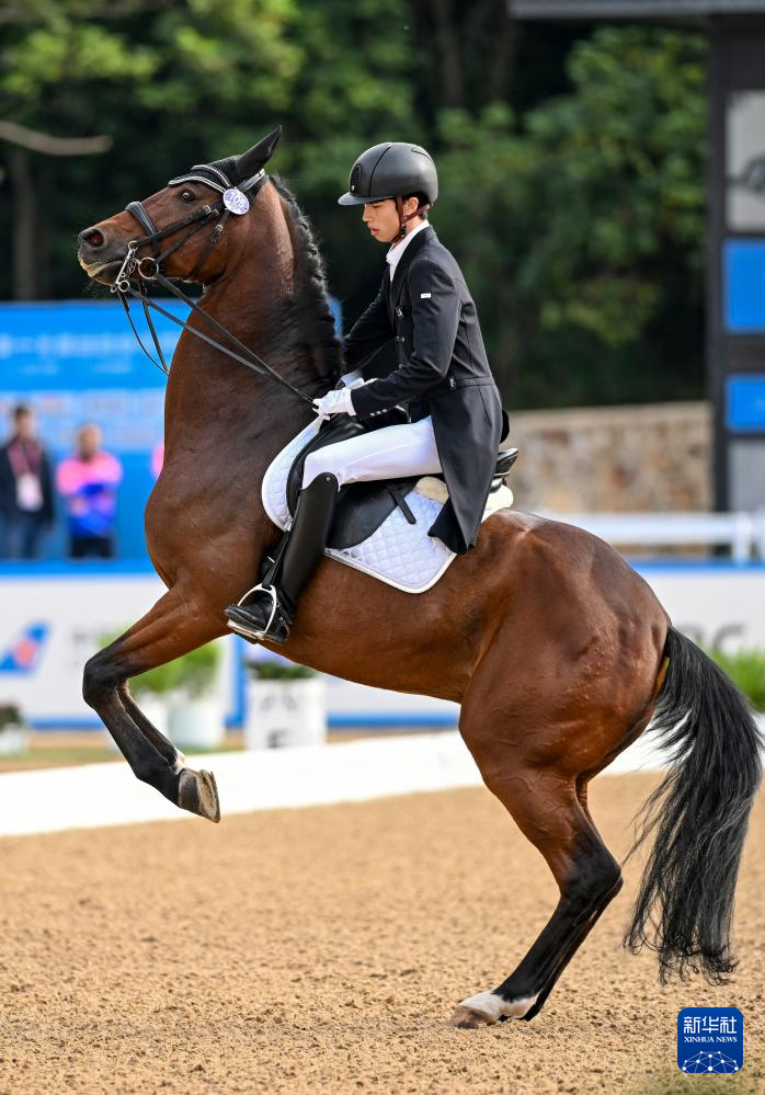 当日,第十五届全国运动会马术比赛盛装舞步个人赛决赛在广东深圳光明国际马术中心举行。