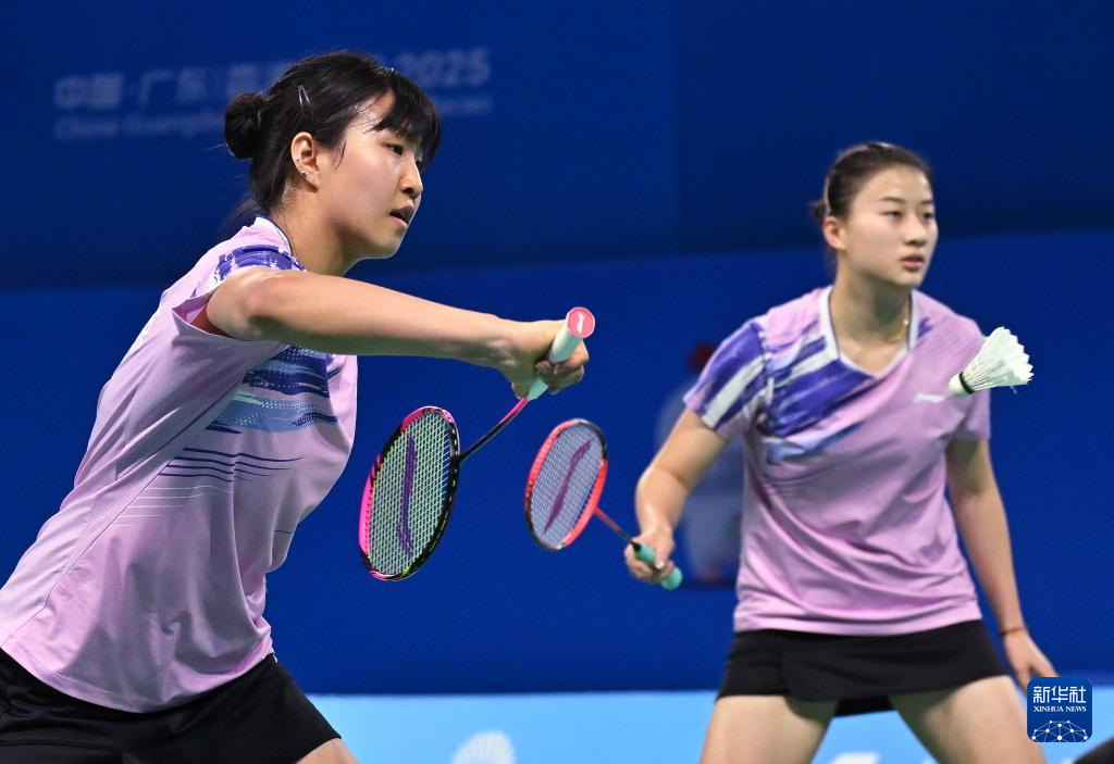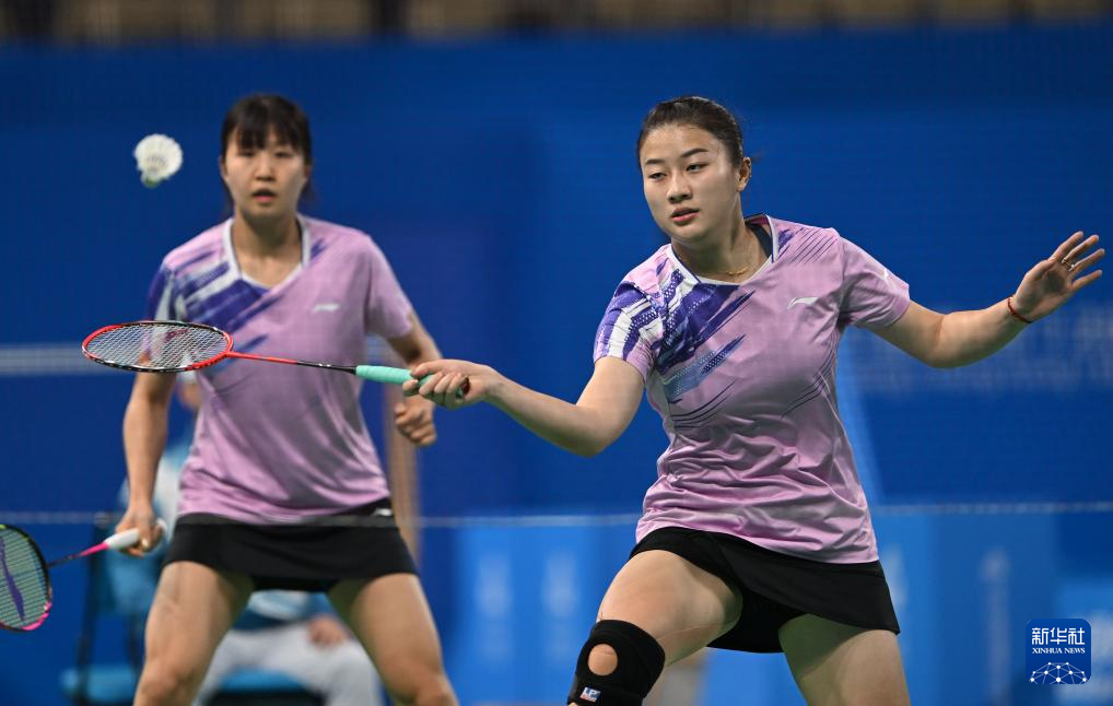 11月12日,浙江队组合黄雅琼(右)/郑岚在女双比赛中回球。她们2比0战胜北京队组合王漪朵/李嘉嘉。
