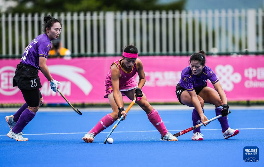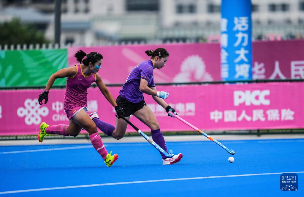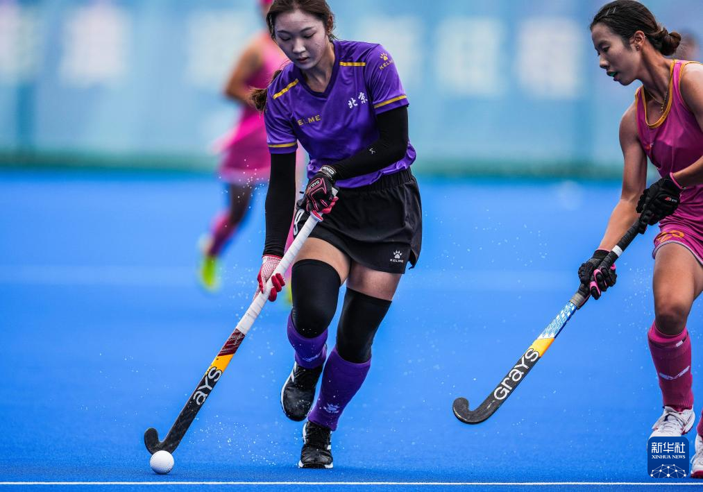 当日,在广东省云浮市举行的第十五届全国运动会女子曲棍球5-8排位赛中,北京队3比2战胜重庆队。