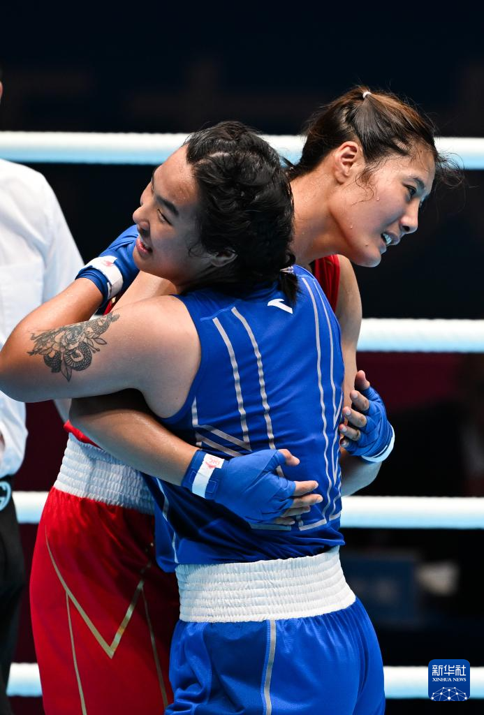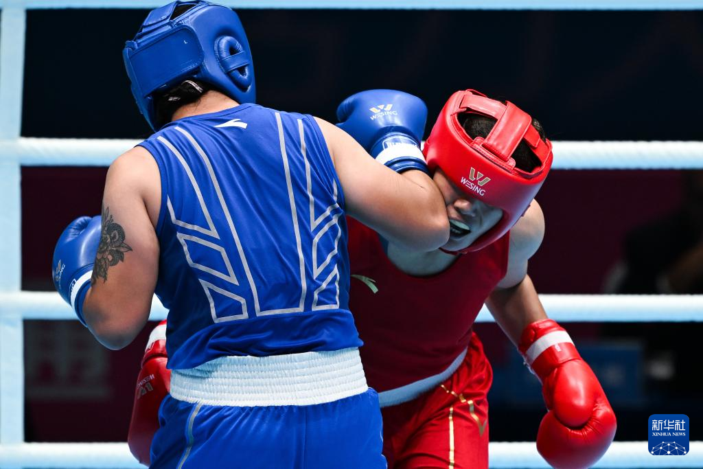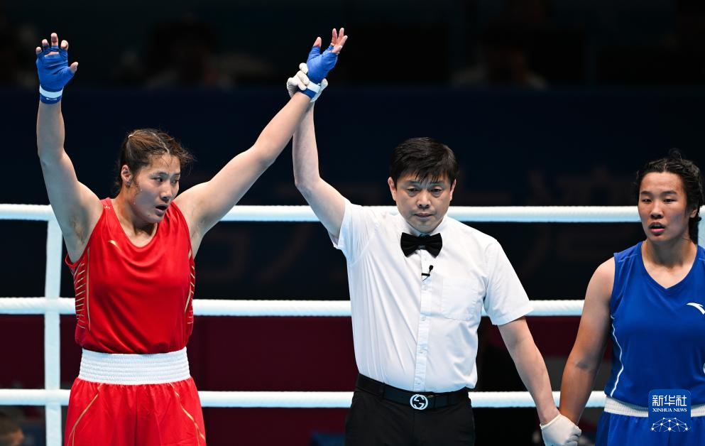 当日,在深圳进行的第十五届全国运动会拳击女子75公斤级半决赛中,黑龙江队选手汪丽娜战胜江苏队选手包子怡,晋级决赛。
