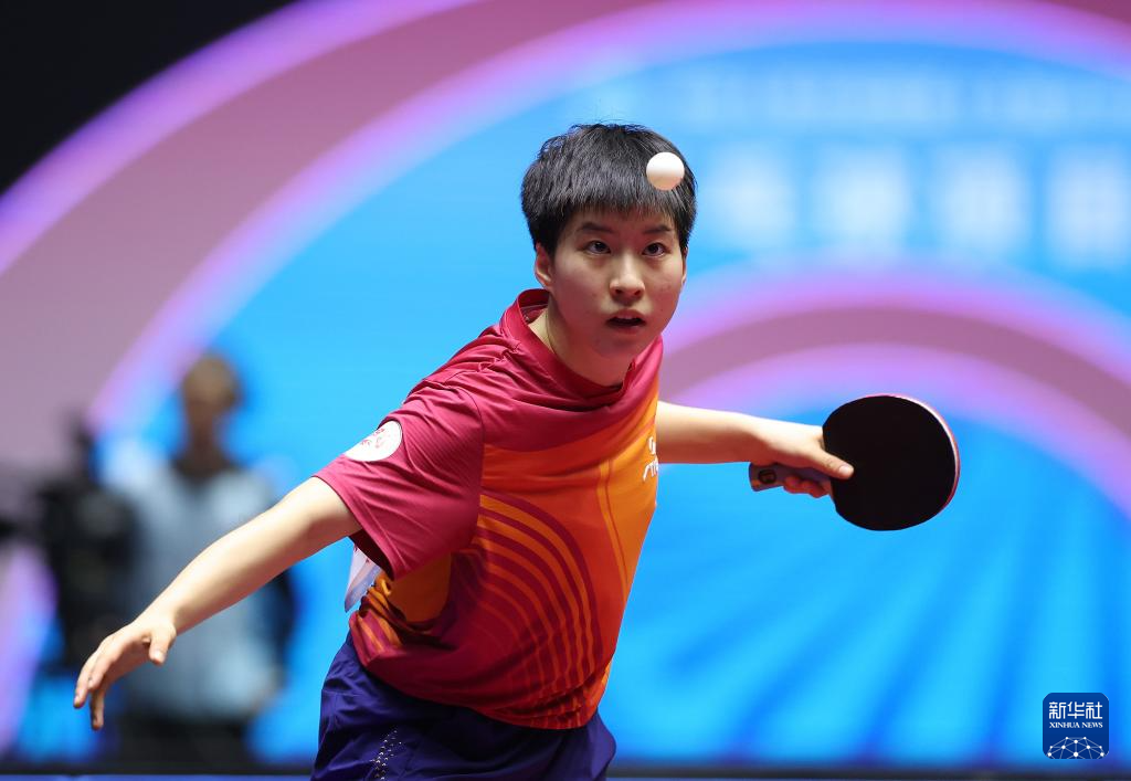 11月13日,河北队选手郭斯予在比赛中回球。她在单打比赛中对阵四川队选手向俊霖。