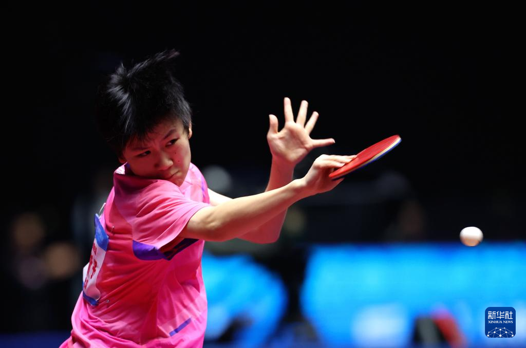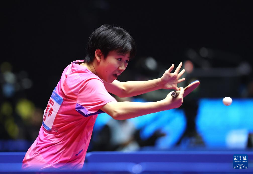 11月13日,河北队选手郭斯予在比赛中。她在单打比赛中3比2战胜四川队选手向俊霖。