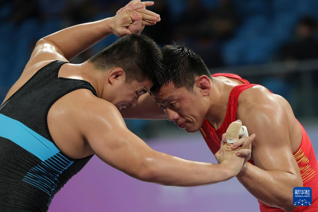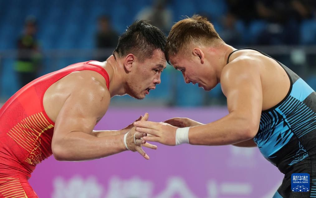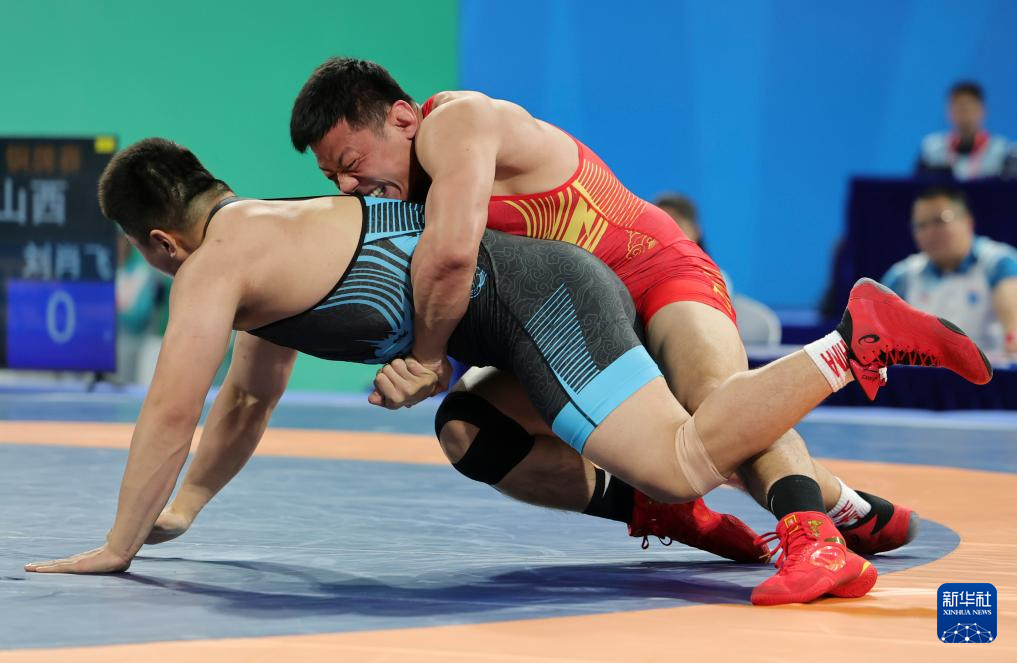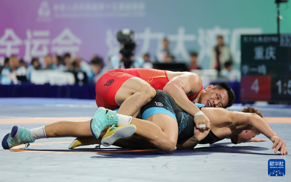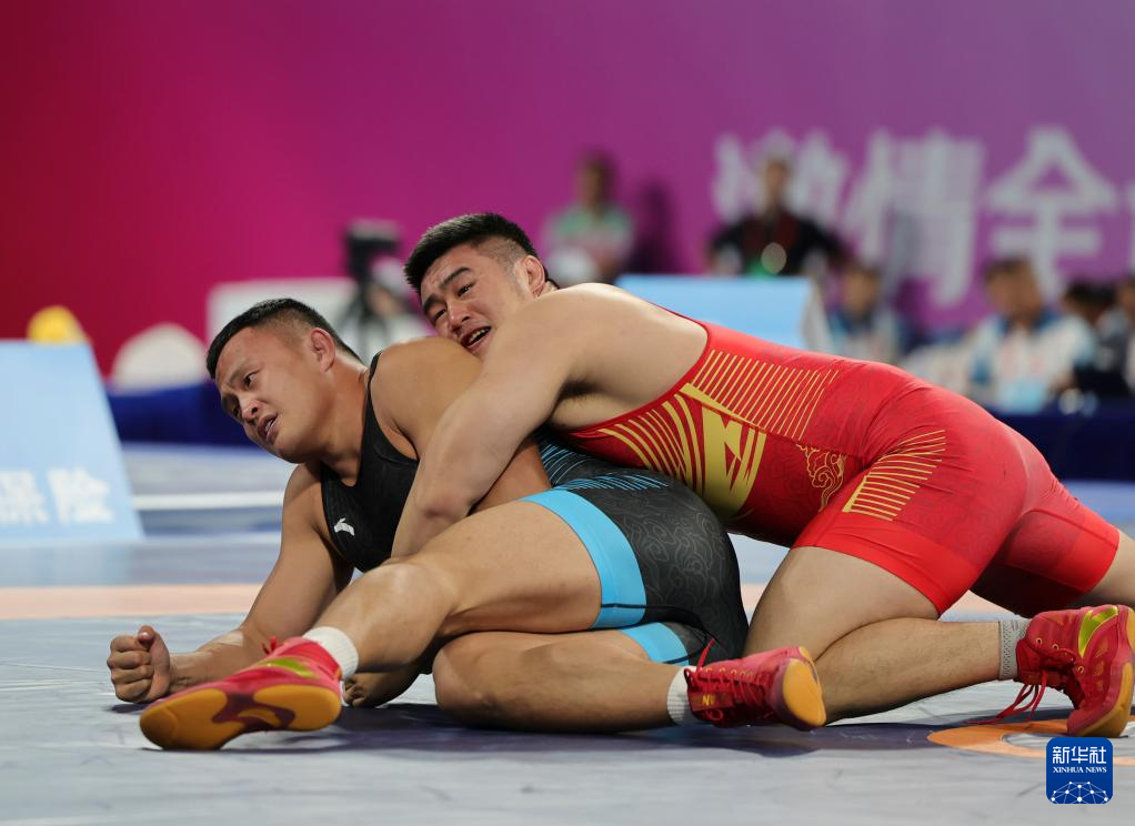 当日,第十五届全国运动会摔跤男子古典式97公斤级比赛在广东清远举行。