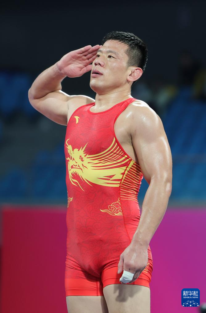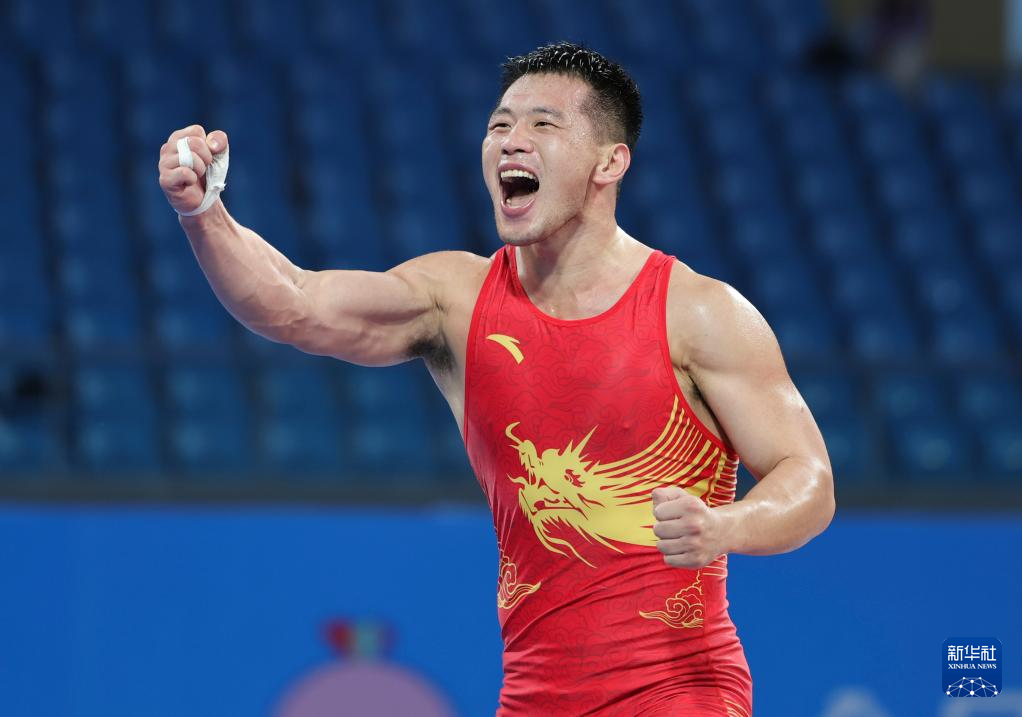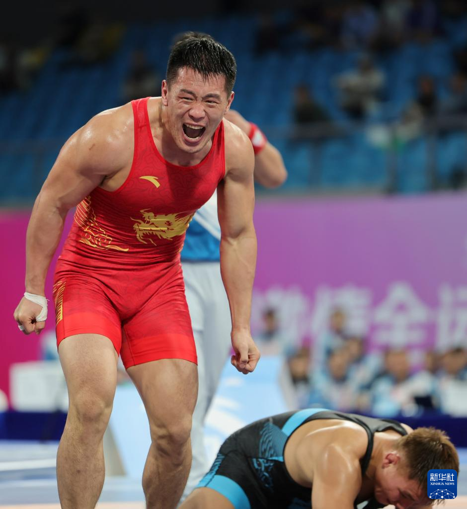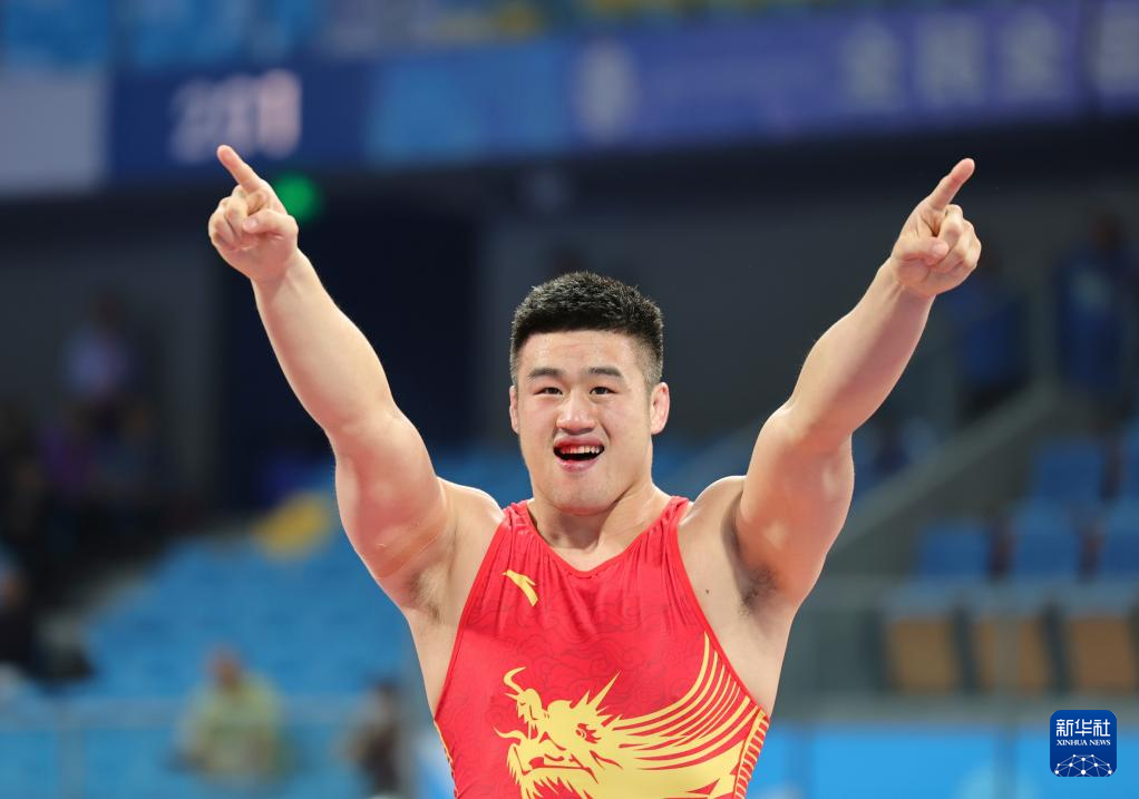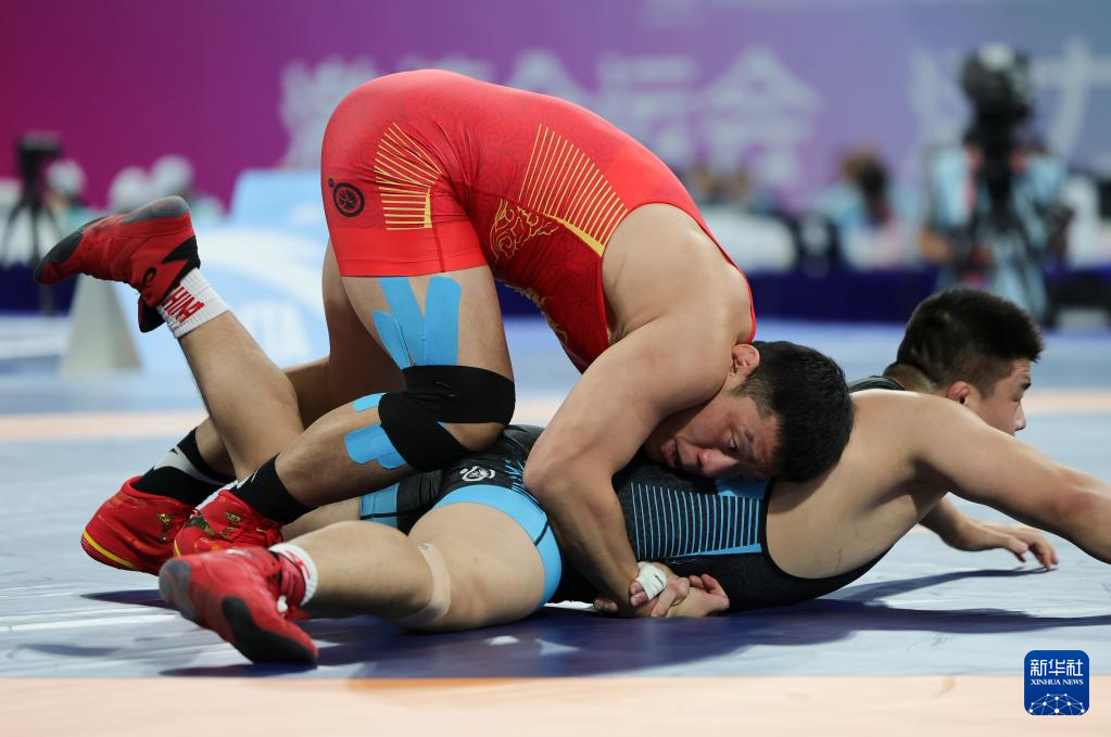 当日,第十五届全国运动会摔跤男子古典式97公斤级比赛在广东清远举行。