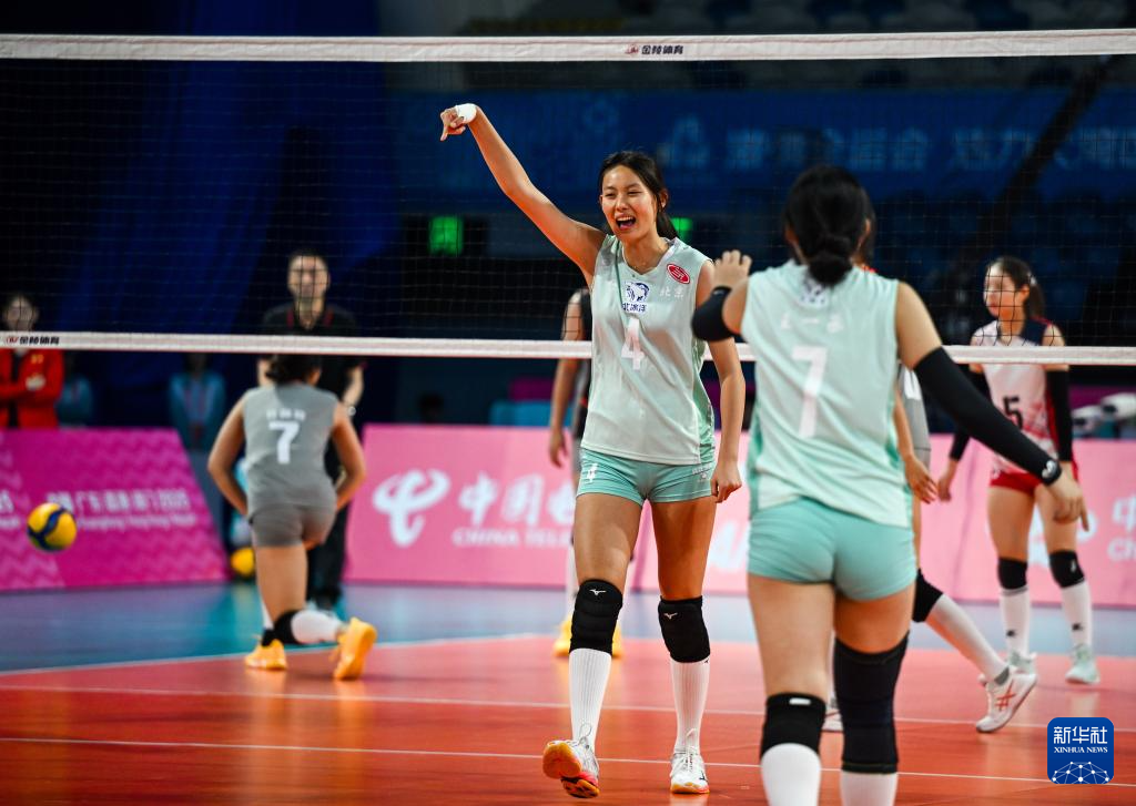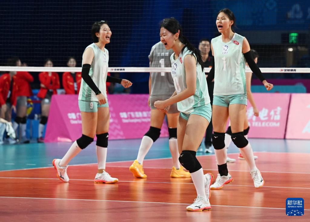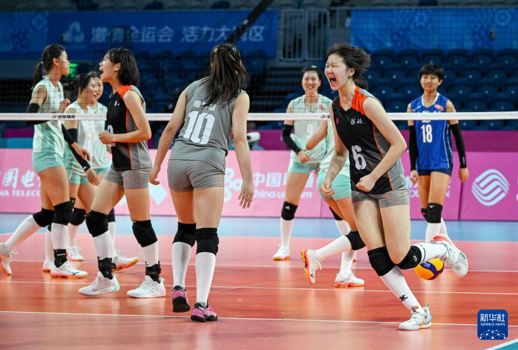 当日,在深圳进行的第十五届全国运动会排球女子18岁以下组小组赛B组比赛中,河北队3比1战胜北京队。