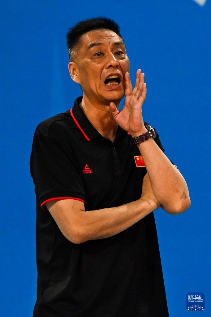 11月13日,河北队教练张忠伟在场边为队员们加油。
