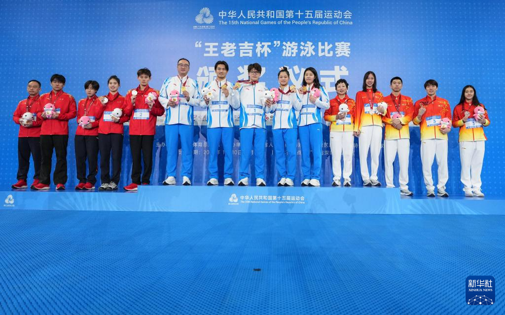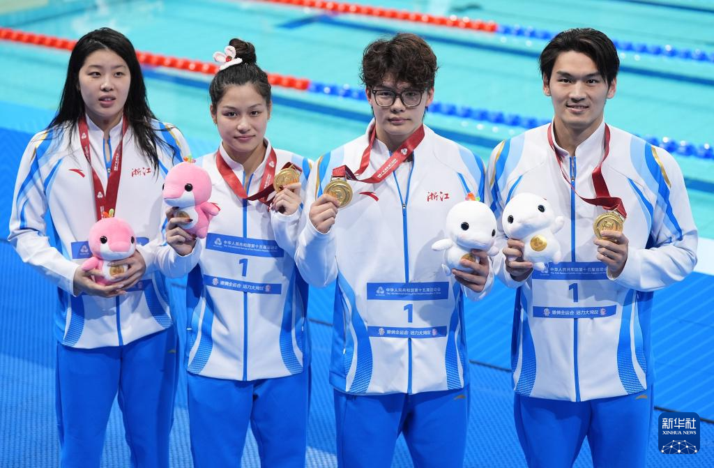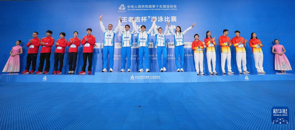 当日,第十五届全国运动会游泳男女4X100米混合泳接力决赛在广东省深圳市举行。
