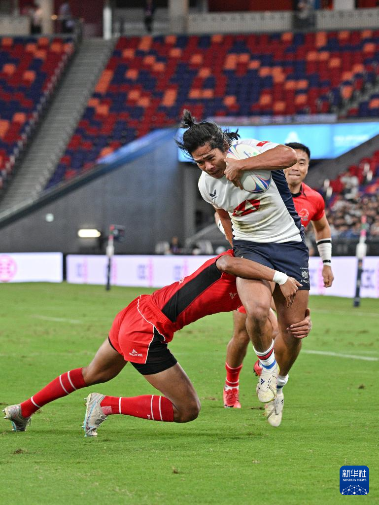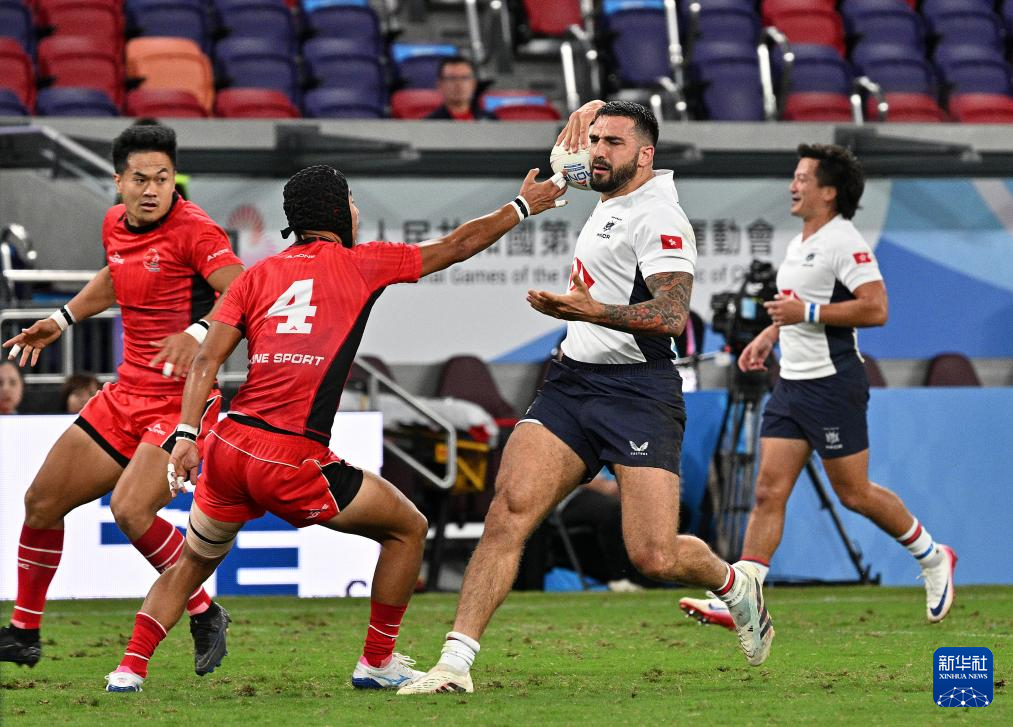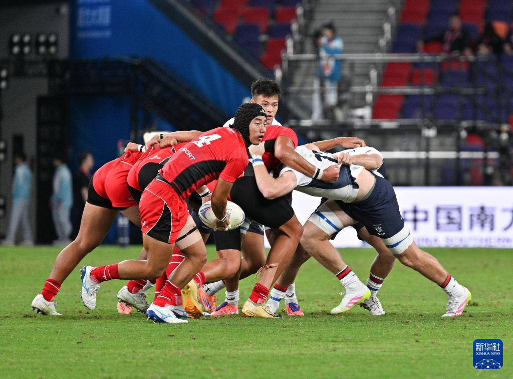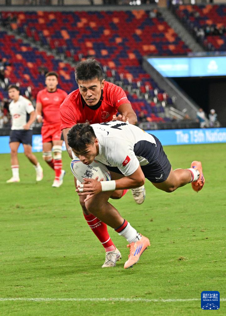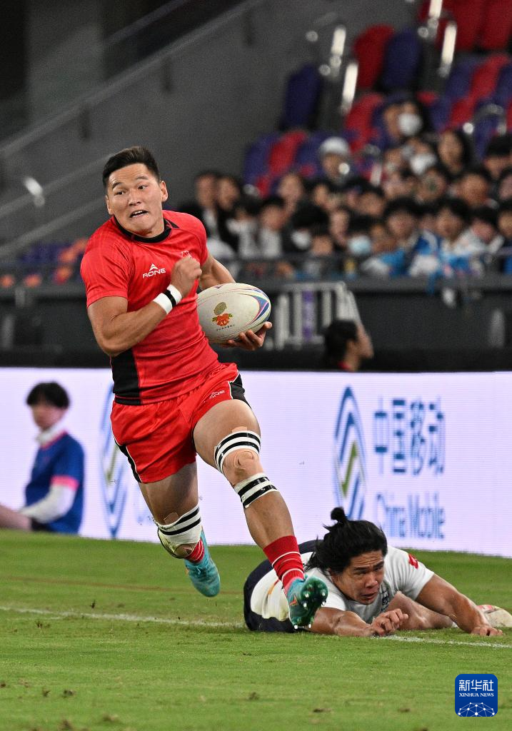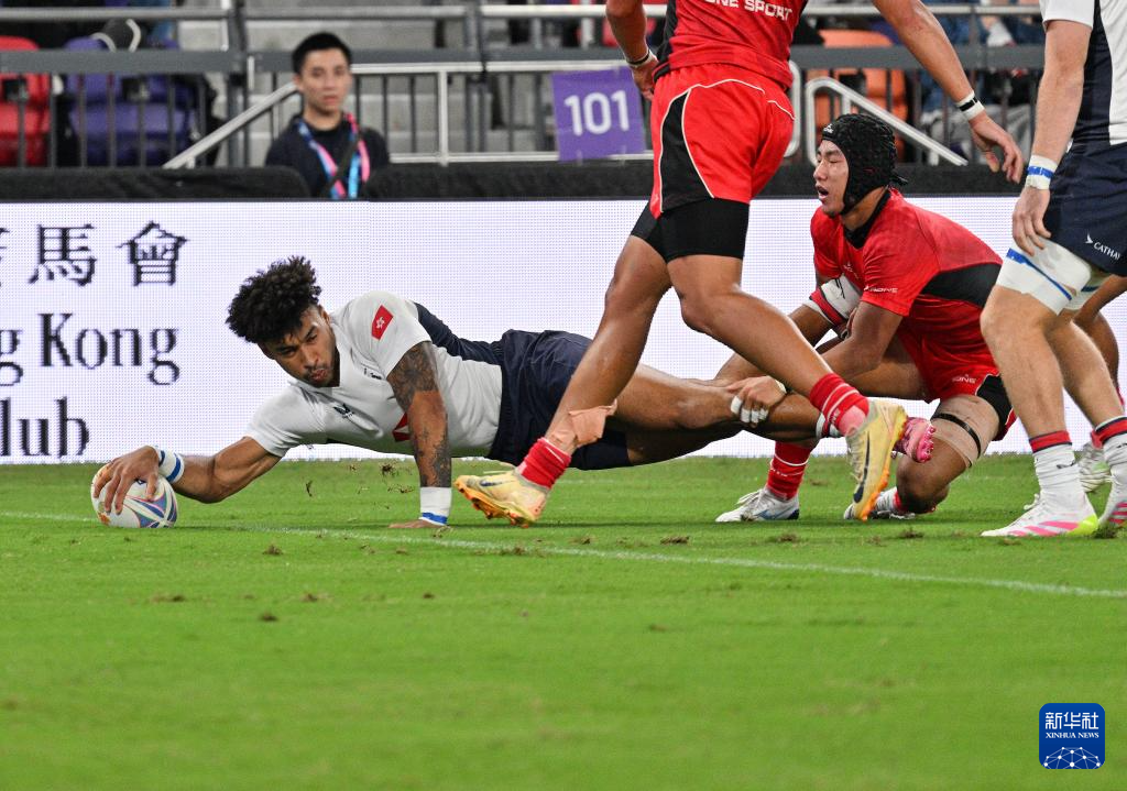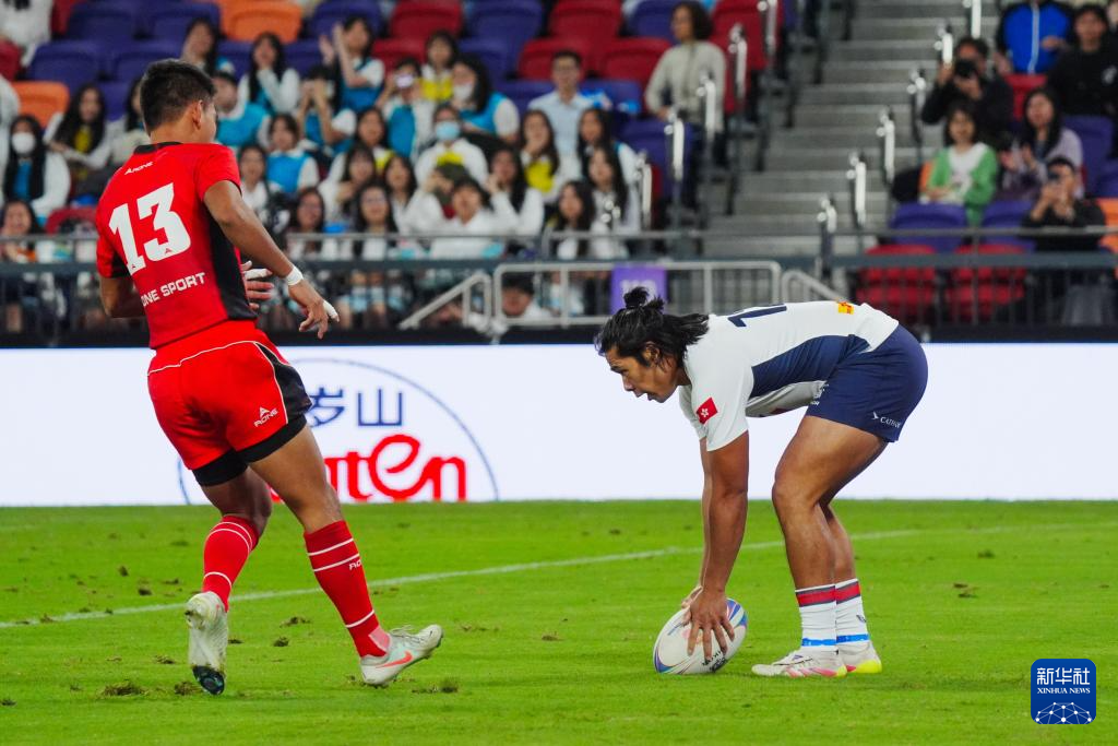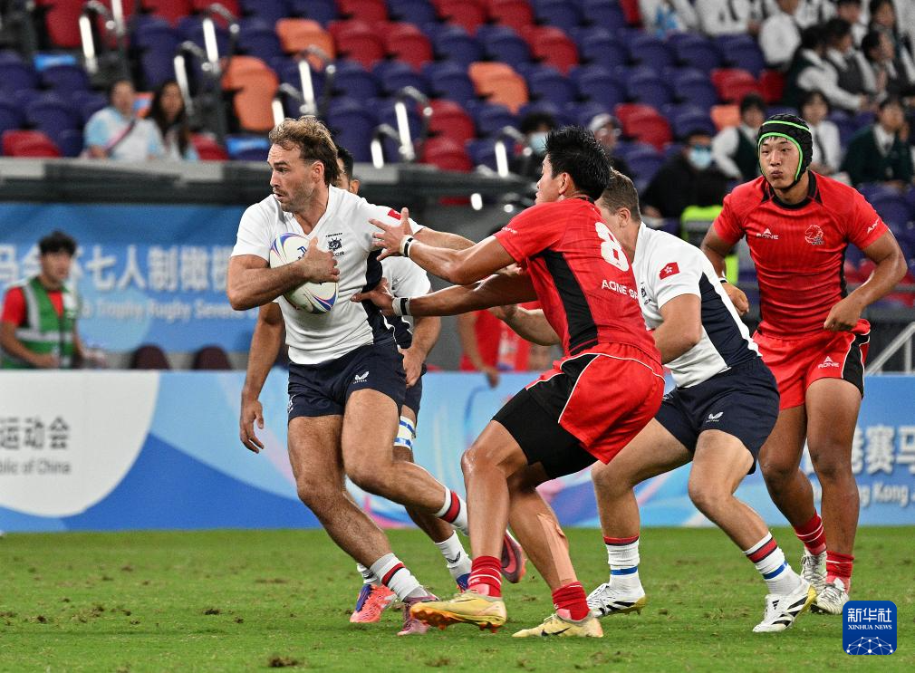 当日,在香港举行的第十五届全国运动会7人制橄榄球男子小组循环赛中,香港队43比5战胜内蒙古队。
