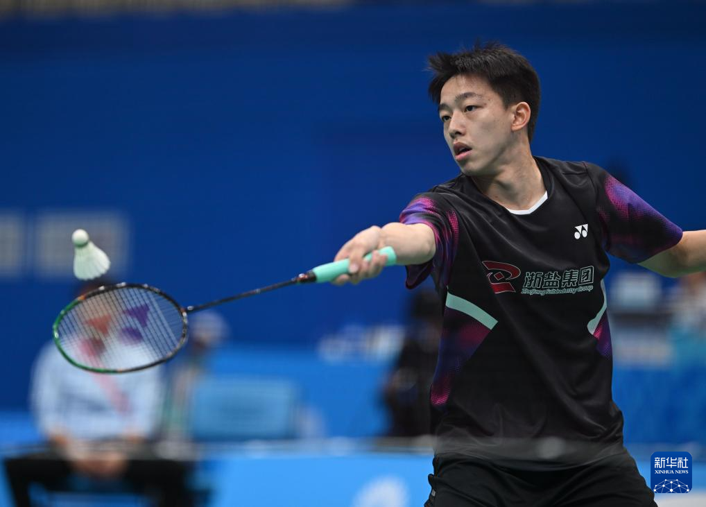 当日,在广东深圳举行的第十五届全国运动会羽毛球男子团体半决赛中,浙江队对阵广东队。