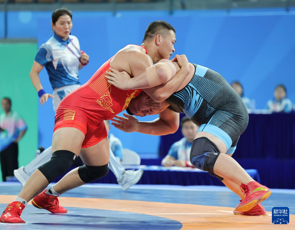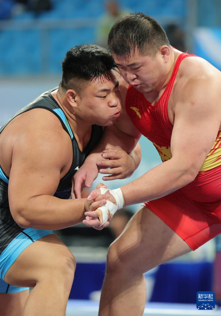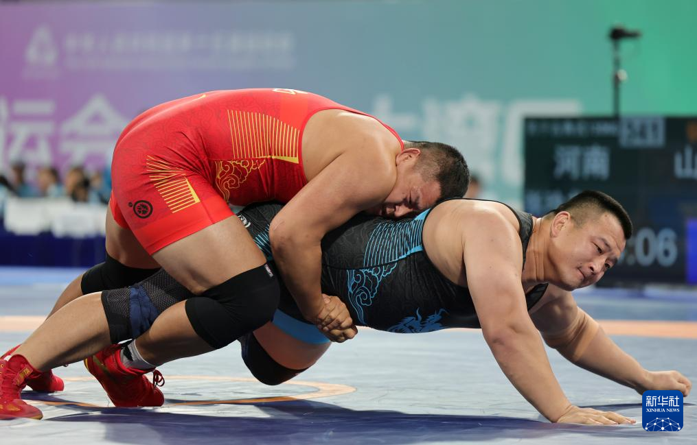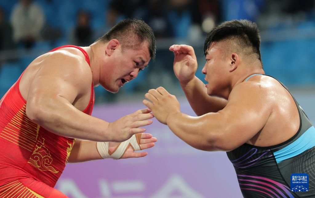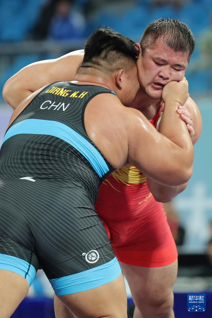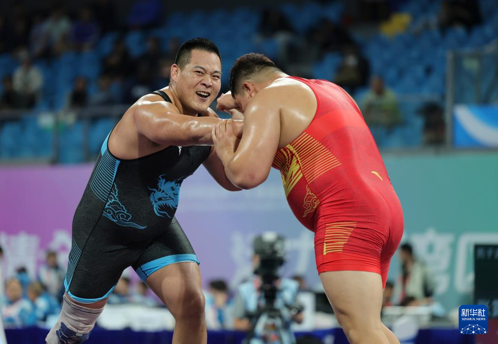 当日,第十五届全国运动会摔跤男子古典式130公斤级比赛在广东清远举行。