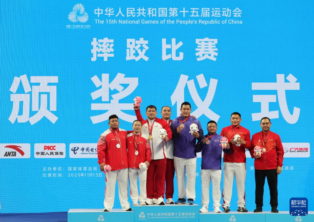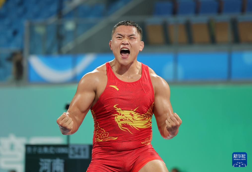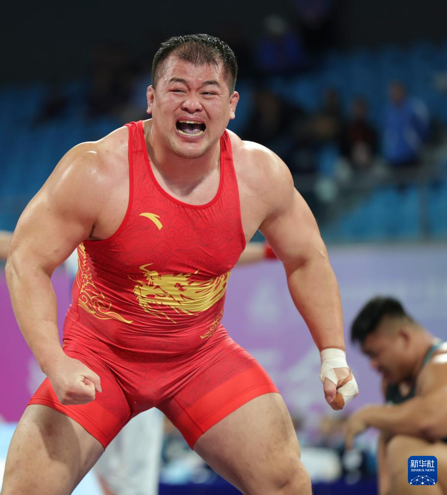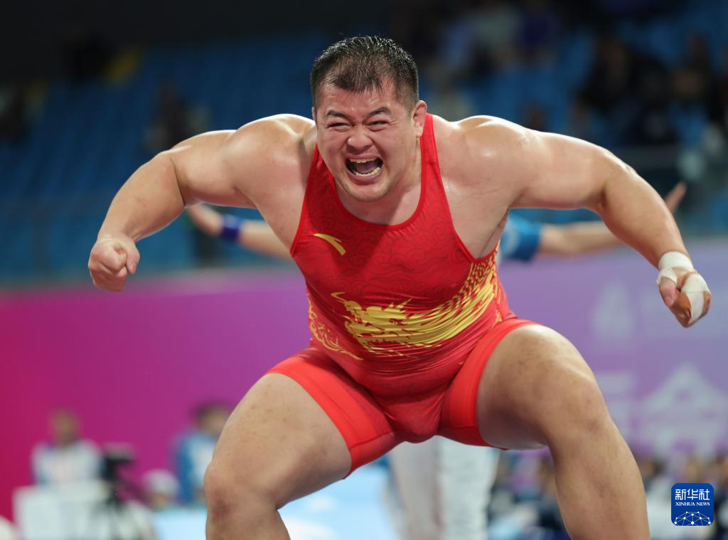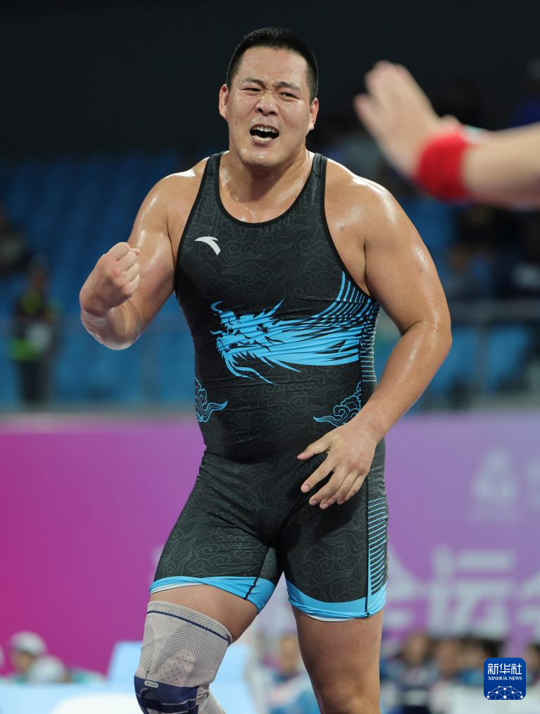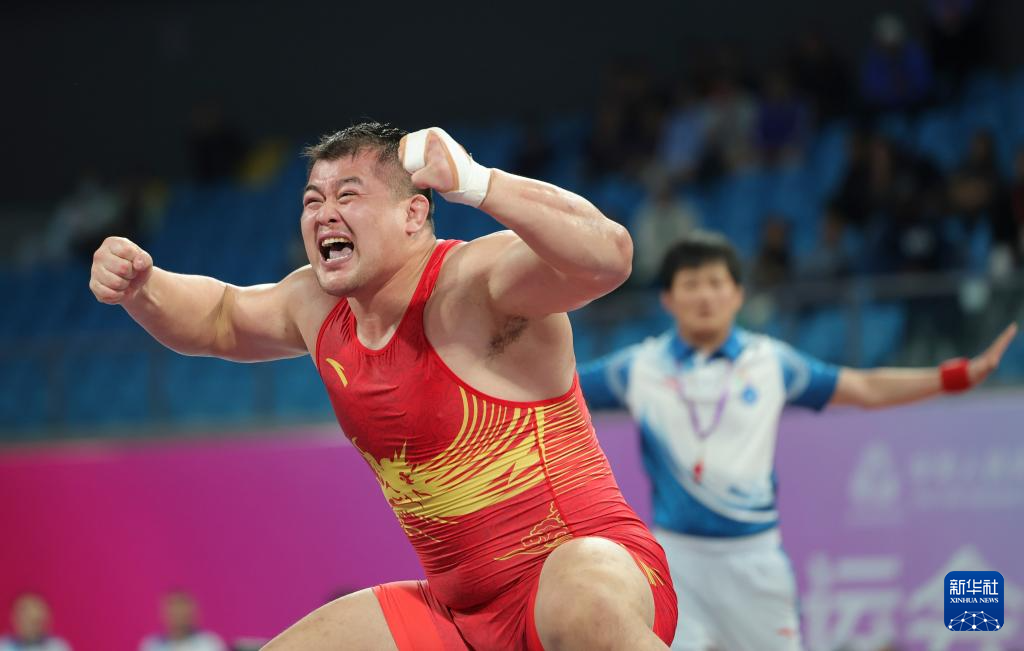 当日,第十五届全国运动会摔跤男子古典式130公斤级比赛在广东清远举行。