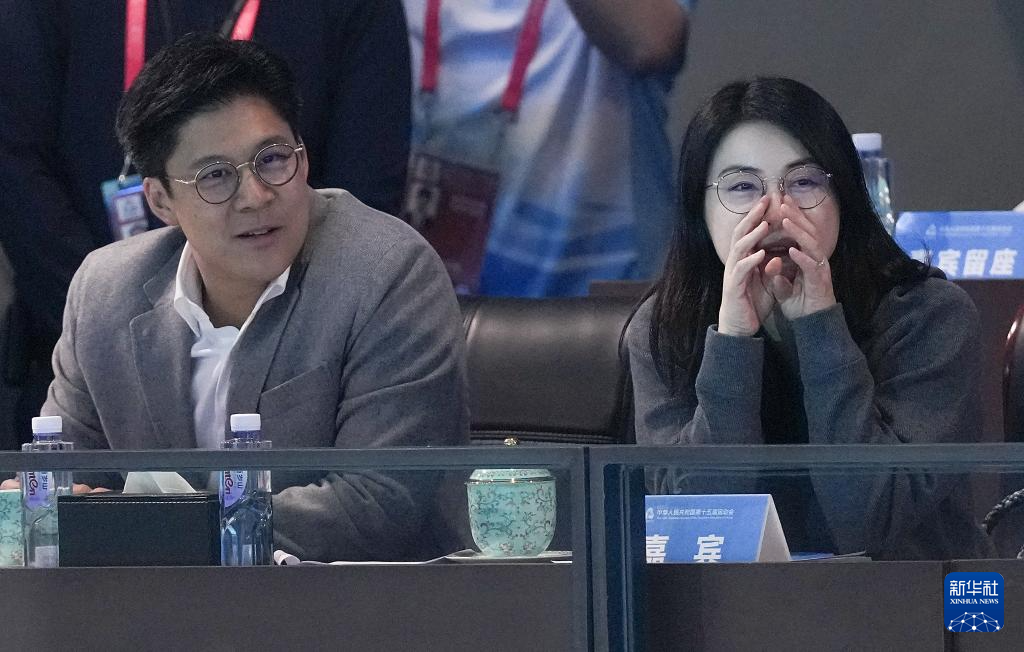 11月13日,郭晶晶(右)和霍启刚在场边观赛。
