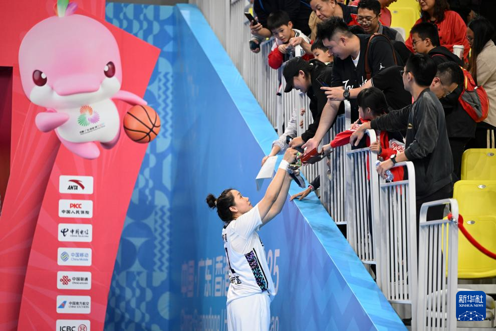 11月13日,四川队球员贾赛琪(左)在赛后与球迷互动。