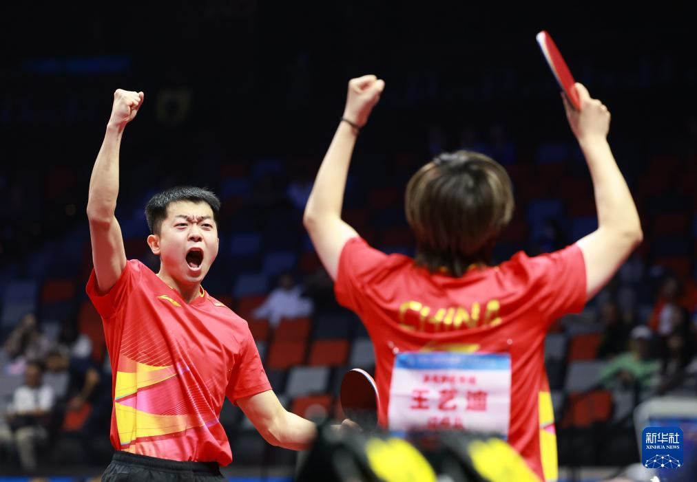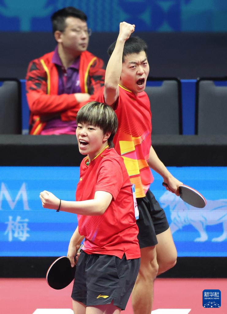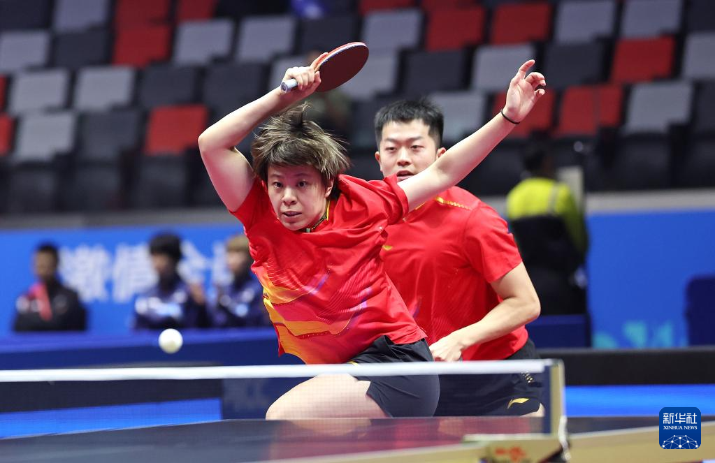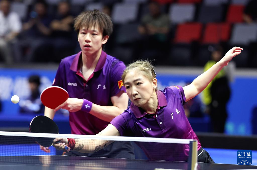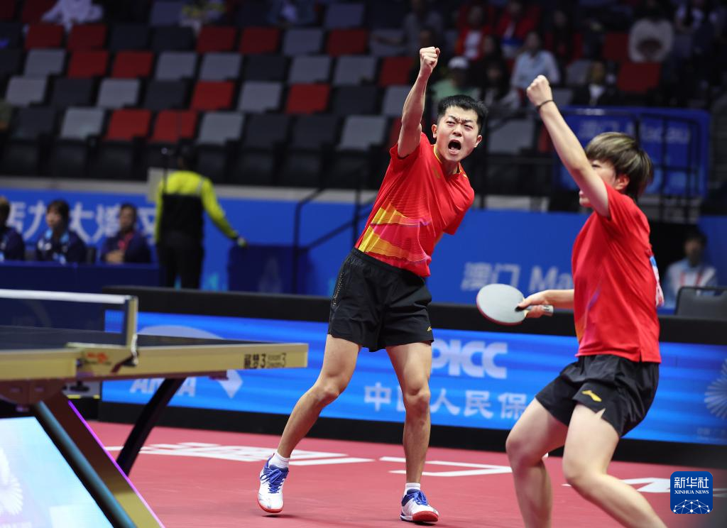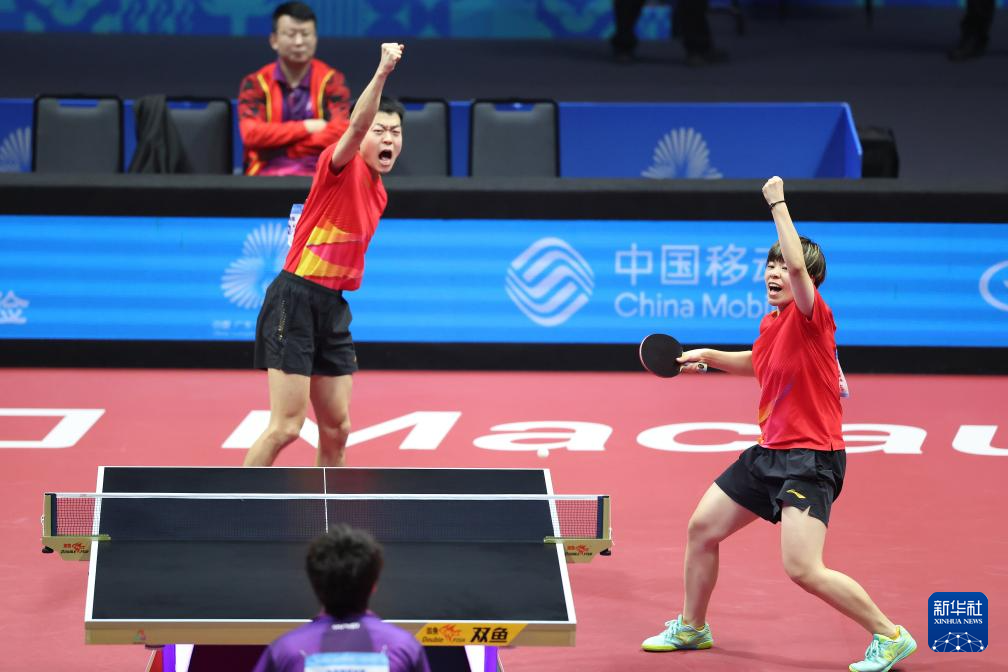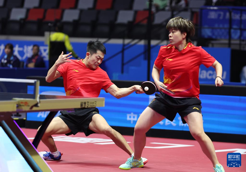 当日,在澳门举行的第十五届全国运动会乒乓球混合双打半决赛中,广东队组合林高远/刘诗雯对阵辽宁队组合袁励岑/王艺迪。