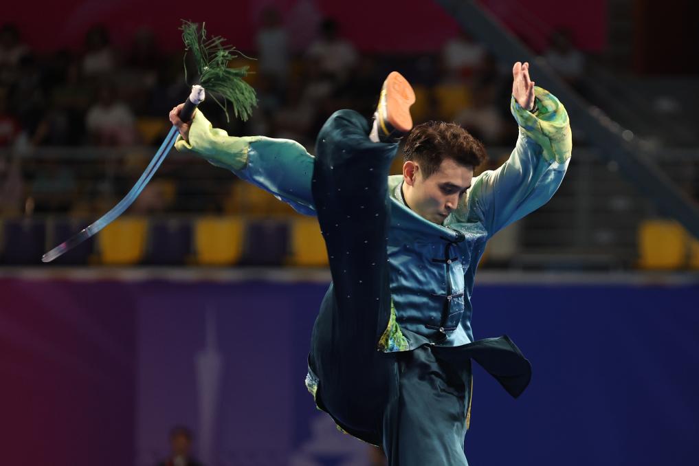 11月8日,山东队选手刘德文在男子太极拳太极剑全能项目太极剑比赛中。最终,他获得冠军。新华社记者 杨世尧 摄