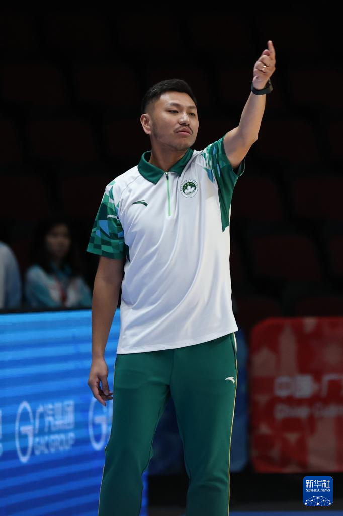 11月13日,澳门队主教练施少雄在场边指挥。