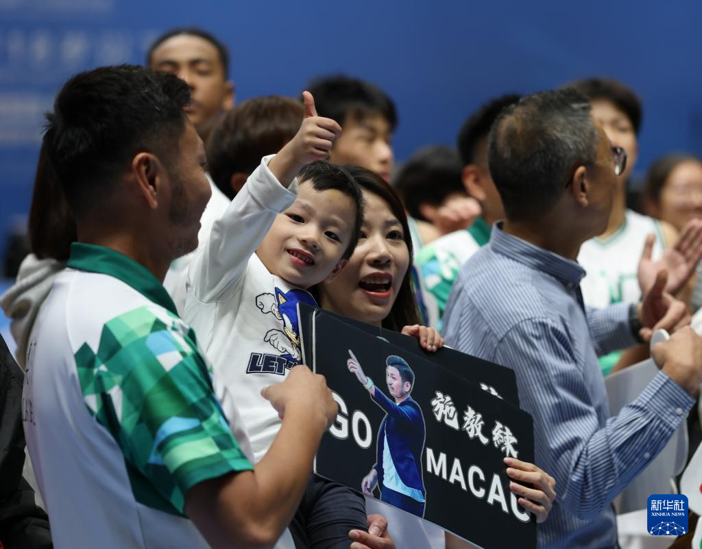11月13日,澳门队主教练施少雄的孩子施竣麒(左二)在赛后点赞。