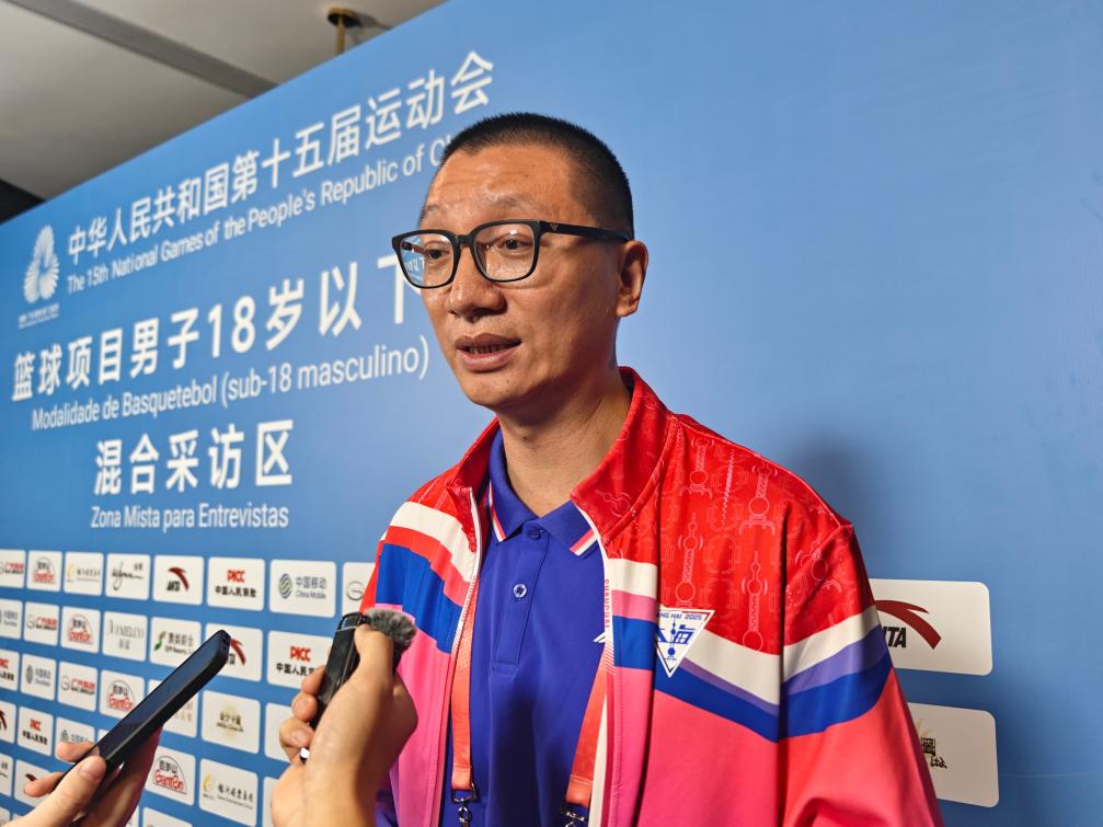 上海队主教练王勇接受采访。新华社记者 韦骅 摄