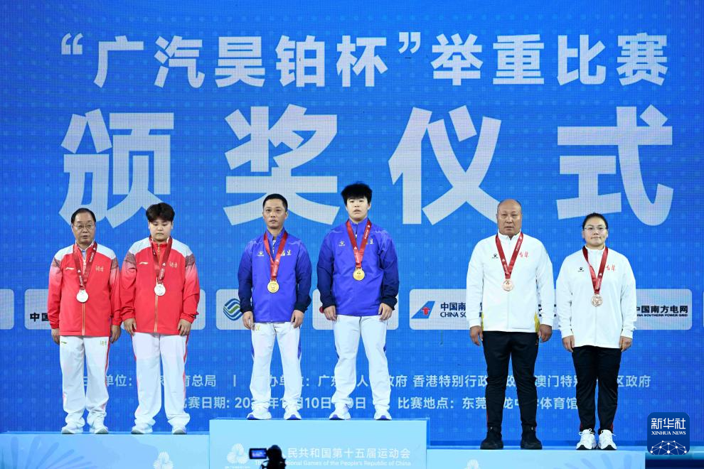 当日,在广东东莞举行的第十五届全国运动会举重女子76公斤级决赛中,福建队选手廖桂芳获得冠军,湖南队选手覃丽蓉和吉林队选手李梦凡分获亚军和季军。