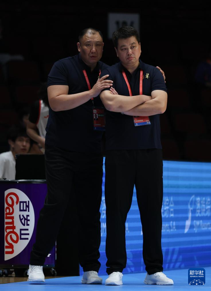 11月13日,吉林队主教练尹玥(右)与吉林队助理教练王晗在场边。