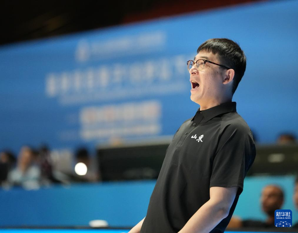 11月12日,山东队主教练王刚在场边指导。