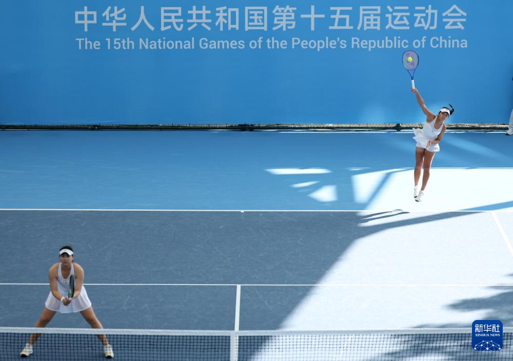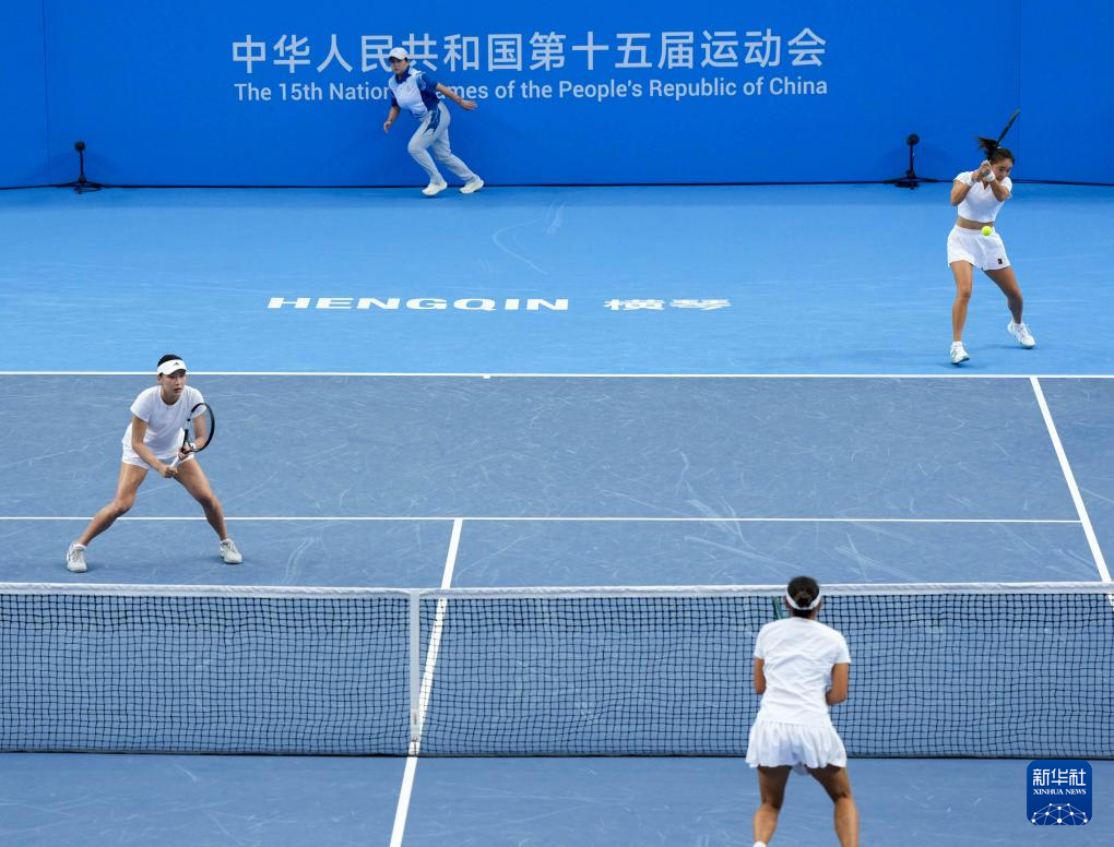 当日,第十五届全国运动会网球项目女子双打第一轮在广东横琴举行。