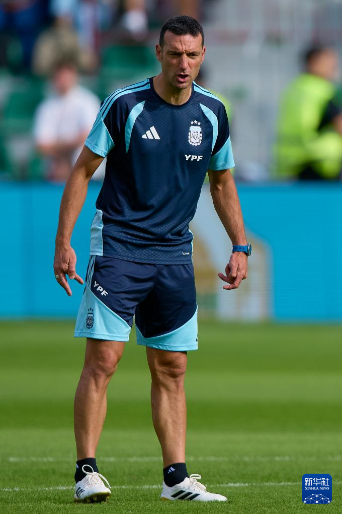 11月13日,阿根廷队主教练斯卡洛尼在训练中。
